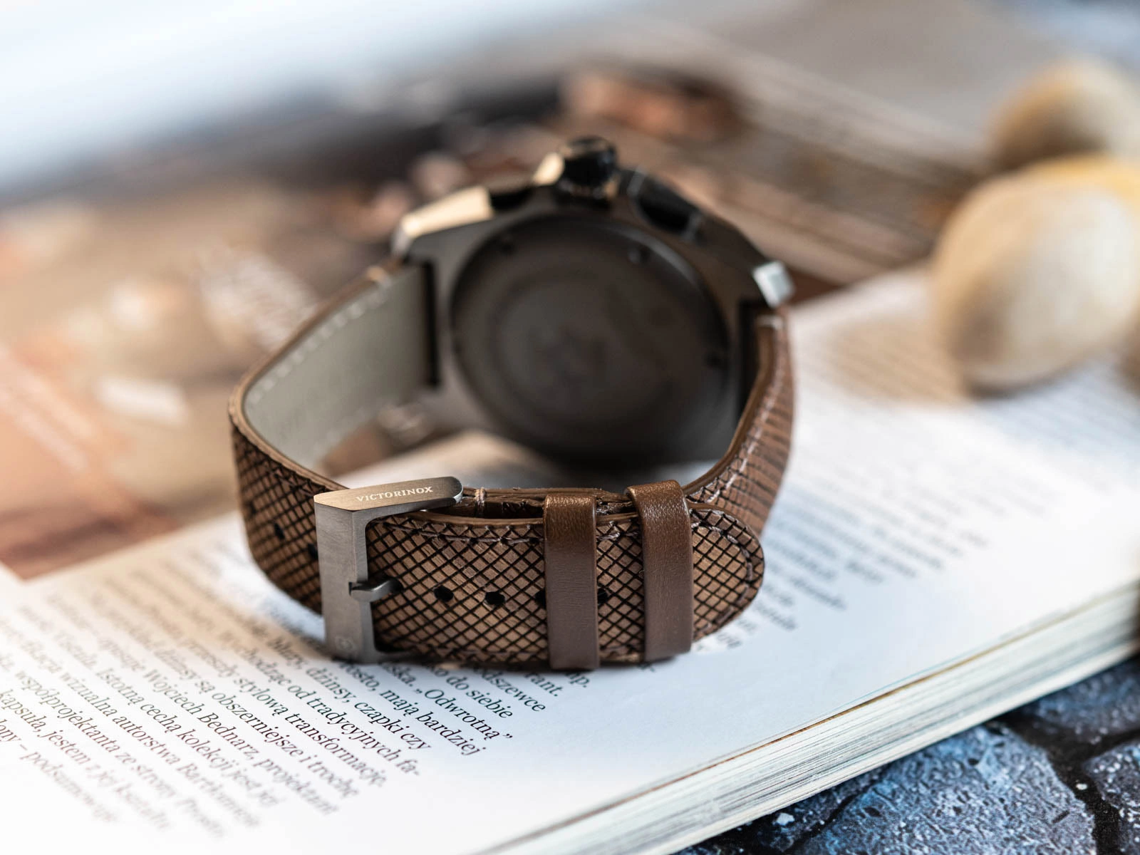 W zestawie znajdują się dwa paski, które pozwalają z łatwością dostosować charakter zegarka do stylu użytkownika i warunków, w jakich ma pracować. Pierwszy z nich, wykonany z naturalnej skóry i zakończony tytanową klamrą, przyciąga uwagę nietuzinkową fakturą oraz ciepłym, naturalnym wykończeniem — to ukłon w stronę świadomego designu i zrównoważonego podejścia do produkcji. Drugi pasek, wykonany z czarnej gumy, dedykowany jest aktywnościom fizycznym — elastyczny, wytrzymały i odporny na wodę, pot oraz zmienne temperatury. Oba paski można wymieniać bez użycia narzędzi, co podnosi funkcjonalność zestawu i wpisuje się w filozofię adaptacyjności, która od lat stanowi trzon produktów Victorinox. Do zestawu dołączono również praktyczne etui. Victorinox 241988.1 INOX Chrono to nie tylko zegarek — to platforma technologiczna ubrana w industrialny szyk, która nie uznaje kompromisów. Jego konstrukcja, wyważona między nowoczesnym rzemiosłem a ekstremalną odpornością, jest odpowiedzią na wymagania tych, którzy nie szukają rzeczy przeciętnych. To czasomierz, który nie pyta o warunki — on po prostu jest na nie gotowy. Zapakowany w oryginalne pudełko producenta będzie również doskonałym pomysłem na preznet.