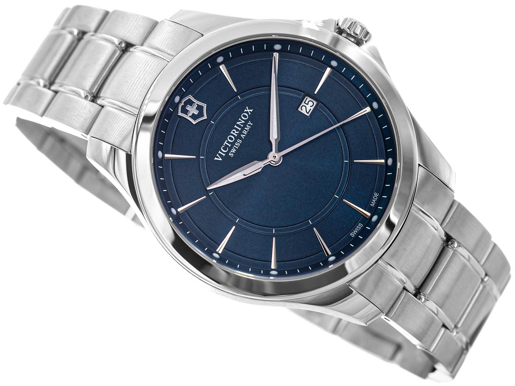- Wodoszczelny Zegarek Męski Victorinox Alliance 241910.1 srebrny na bransolecie. Posiada funkcję datownika oraz neobrite. W zestawie z szwajcarskim scyzorykiem Victorinox Pioneer Alox.