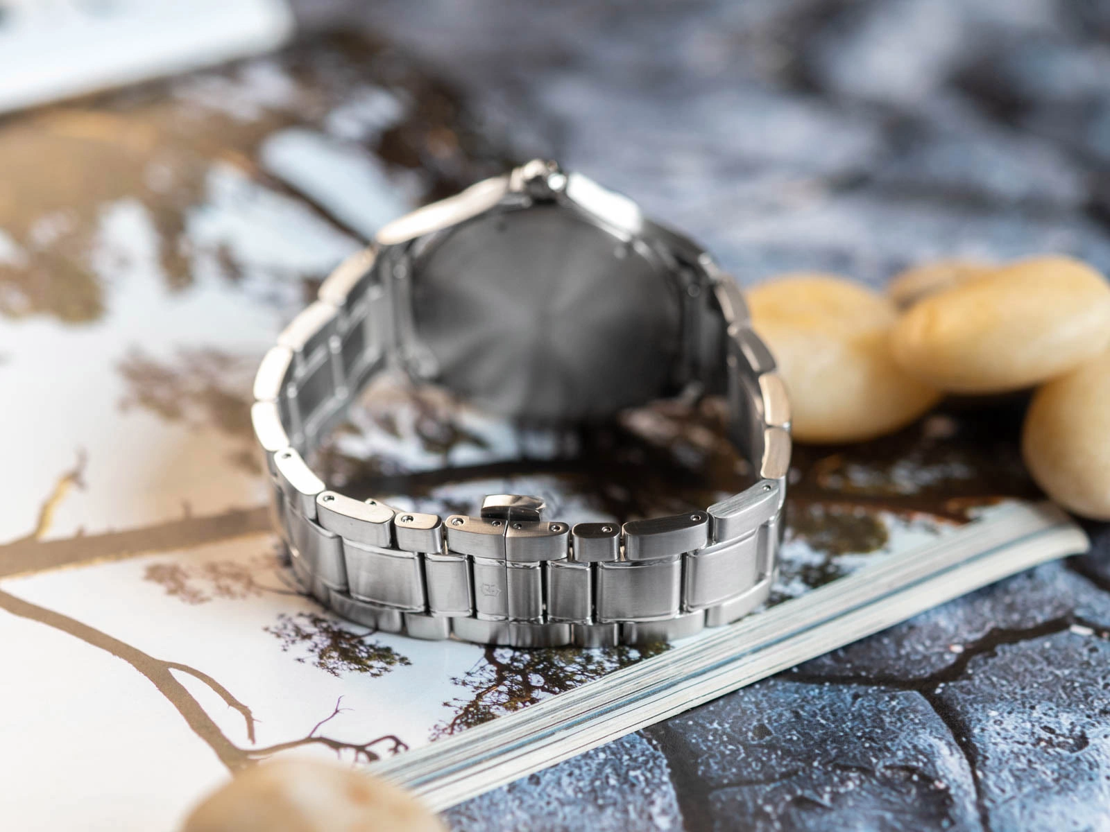 Sercem Victorinox 241910.1 Alliance jest szwajcarski mechanizm kwarcowy, znany z wyjątkowej niezawodności i długiej żywotności. Dzięki niemu zegarek działa bezgłośnie i z niemal laboratoryjną precyzją, minimalizując konieczność konserwacji. Mechanizm został zamknięty w kopercie wykonanej z odpornej na rdzę i uszkodzenia mechaniczne stali szlachetnej 316L – materiału wykorzystywanego m.in. w przemyśle medycznym oraz lotniczym. Odpowiednio wyprofilowana koperta łączy powierzchnie szczotkowane z polerowanymi, tworząc elegancki kontrast tekstur, który podkreśla wysoką jakość wykonania. Zabezpieczenie koronki po obu stronach poprawia wytrzymałość konstrukcji i zwiększa odporność na przypadkowe uderzenia. Na równi z kopertą stoi bransoleta wykonana z tego samego gatunku stali szlachetnej co koperta. Dzięki odpowiednio dobranej szerokości oraz przemyślanemu projektowi ogniw, gwarantuje komfortowe dopasowanie do nadgarstka. Zapięcie motylkowe, zapewnia bezpieczeństwo użytkowania – raz zapięty zegarek pozostaje na miejscu, niezależnie od aktywności. Zastosowanie antyalergicznej stali sprawia, że bransoleta jest odpowiednia także dla osób o wrażliwej skórze, a sama konstrukcja nie powoduje podrażnień nawet przy długotrwałym noszeniu. Jednym z najbardziej wyrazistych atutów modelu Victorinox 241910.1 Alliance jest jego odporność na czynniki zewnętrzne. Zegarek spełnia normy wodoszczelności na poziomie 10 ATM, co oznacza, że doskonale sprawdza się nie tylko w codziennym użytkowaniu, ale również trakcie aktywności związanych z wodą. Szafirowe szkło, charakteryzujące się niezwykle wysoką twardością, zabezpiecza tarczę przed zarysowaniami, a zastosowana powłoka antyrefleksyjna zwiększa czytelność nawet w intensywnym świetle dziennym.