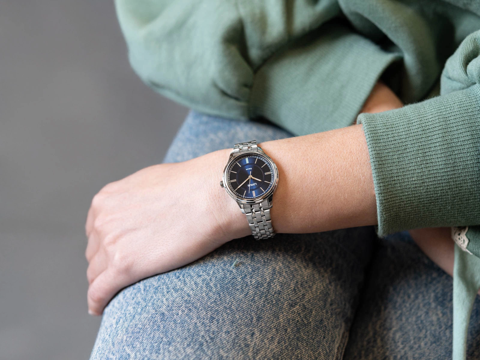 Zegarek damski LORUS RG205VX9 to połączenie subtelnej elegancji, ponadczasowego designu i wysokiej jakości wykonania. Ten stylowy model stworzony został z myślą o kobietach, które cenią sobie zarówno estetykę, jak i funkcjonalność codziennych dodatków. Sercem zegarka jest precyzyjny, japoński mechanizm kwarcowy, znany z niezawodnego działania i doskonałej dokładności odmierzania czasu. To sprawia, że LORUS RG205VX9 jest nie tylko pięknym, ale i praktycznym towarzyszem dnia codziennego. Pod wytrzymałym, mineralnym szkiełkiem znajduje się gustowna, granatowa tarcza, której głębia barwy subtelnie kontrastuje z lśniącymi, srebrnymi indeksami i smukłymi wskazówkami. Minimalistyczny, ale zarazem bardzo czytelny układ cyferblatu podkreśla nowoczesny charakter zegarka, a jednocześnie zapewnia komfort odczytu godziny w każdych warunkach.