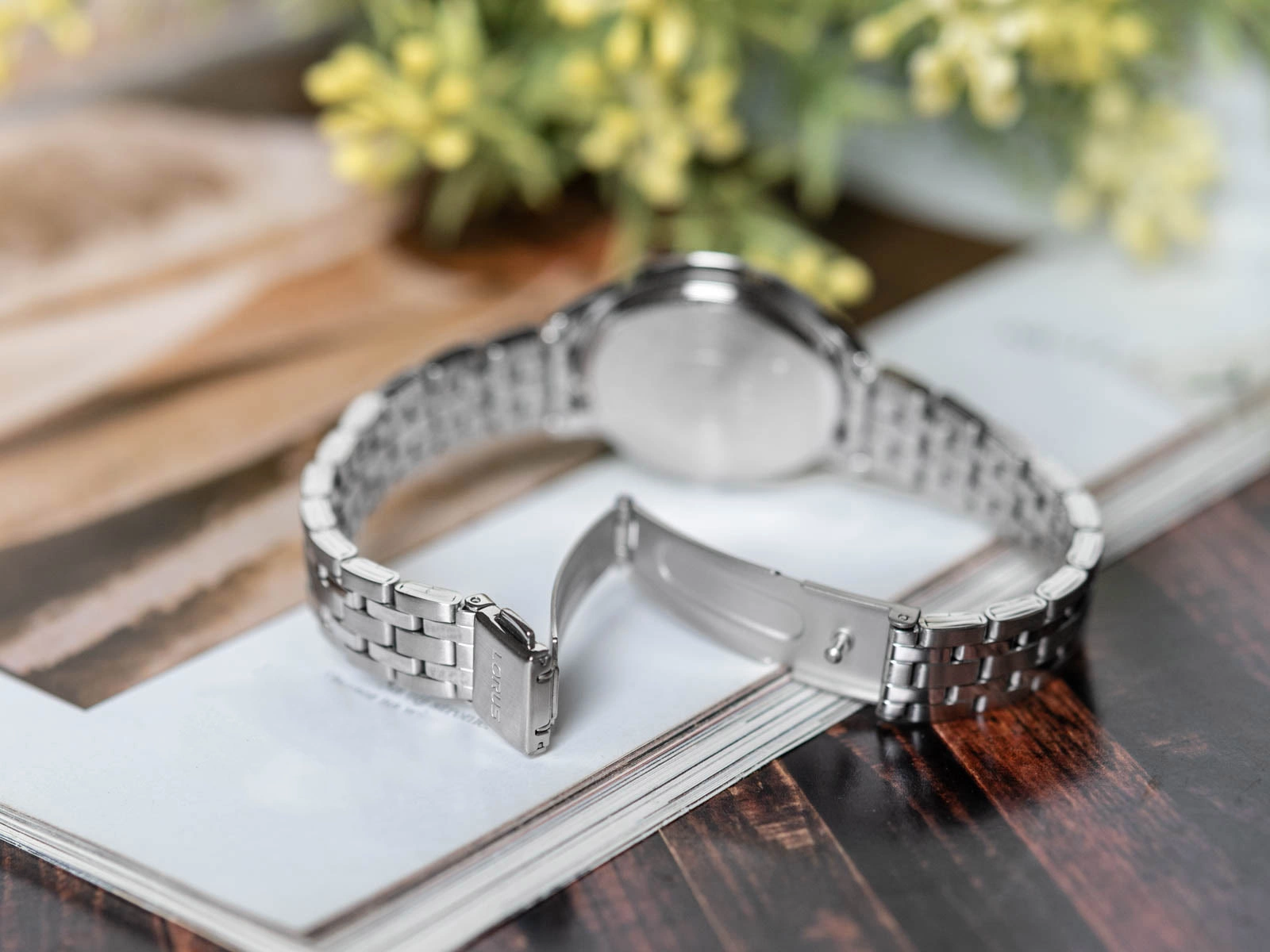 Koperta oraz bransoleta wykonane zostały z wysokiej jakości stali szlachetnej, co gwarantuje trwałość, odporność na codzienne użytkowanie oraz elegancki połysk. Bransoleta została zakończona praktycznym zapięciem motylkowym z podwójnym zabezpieczeniem, które chroni przed przypadkowym odpięciem się zegarka i zapewnia jego stabilne utrzymanie na nadgarstku. Zegarek LORUS RG205VX9 to niezwykle uniwersalny dodatek – doskonale sprawdzi się zarówno w zestawieniu z codziennymi, casualowymi stylizacjami, jak i w bardziej eleganckim, formalnym wydaniu. Jego stonowana kolorystyka i klasyczna forma sprawiają, że będzie idealnym uzupełnieniem garderoby na każdą okazję. Całość zapakowana jest w eleganckie, firmowe pudełko, które podkreśla wysoką jakość marki Lorus i czyni zegarek doskonałym pomysłem na gustowny prezent – zarówno dla siebie, jak i dla bliskiej osoby.