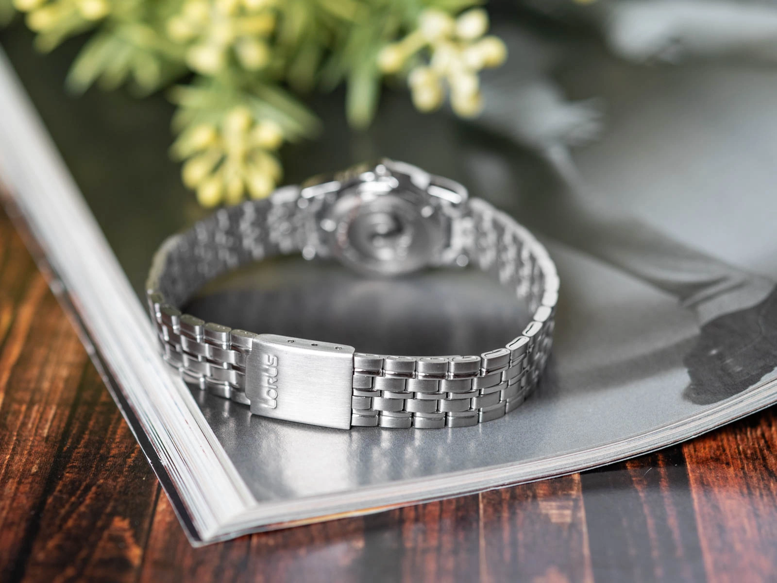 Zegarek posiada solidną bransoletę wykonaną ze stali nierdzewnej, która została wyposażona w praktyczne i wygodne zapięcie, umożliwiające szybkie zakładanie oraz zdejmowanie. Mechanizm czasomierza opiera się na precyzyjnej technologii japońskiego kwarcu, zasilanej standardową, łatwą do wymiany baterią, co gwarantuje niezawodność i długotrwałe działanie. Dzięki swoim kompaktowym wymiarom model ten idealnie sprawdzi się na drobnej, kobiecej dłoni, oferując maksymalny komfort noszenia. Stonowany, minimalistyczny wygląd sprawia, że zegarek będzie doskonałym dodatkiem dla kobiet ceniących sobie klasykę, elegancję i funkcjonalność w jednym. Całość zapakowana jest w eleganckie, firmowe pudełko marki Lorus, dzięki czemu model RRS29HX9 znakomicie nadaje się również na prezent – zarówno dla siebie, jak i bliskiej osoby.