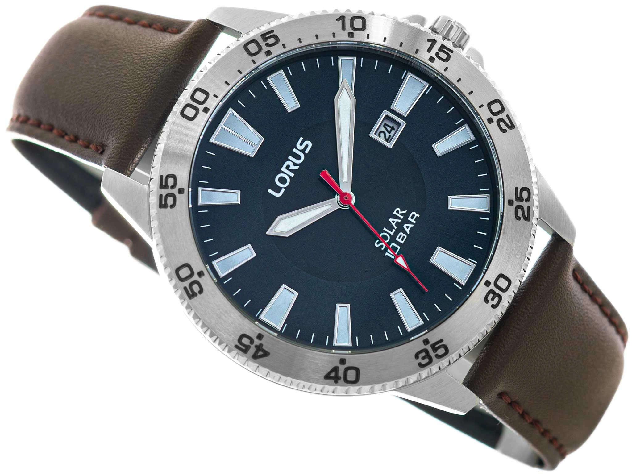 - Zegarek Męski Lorus RX349AX9 brązowy na pasku, posiada funkcję datownika. Zegarek wodoszczelny.