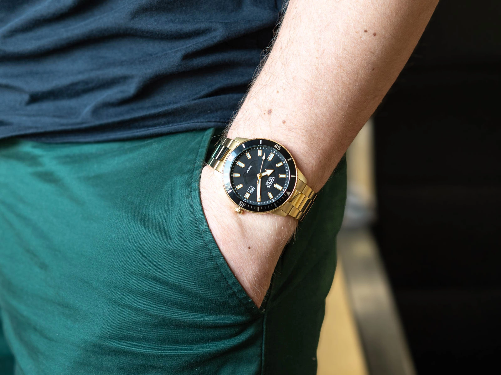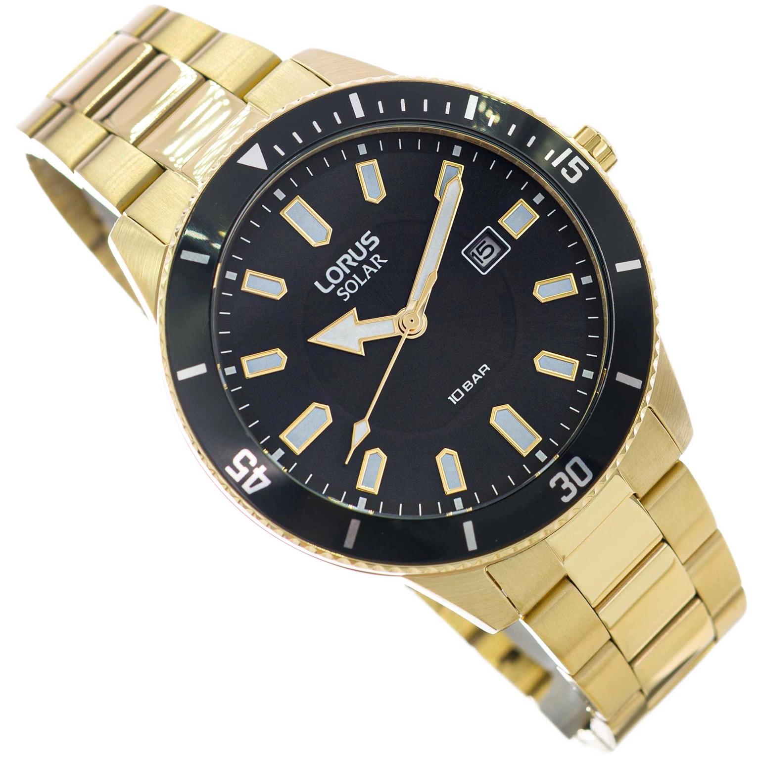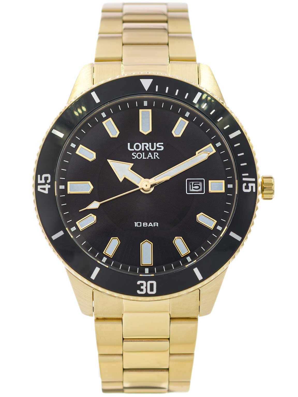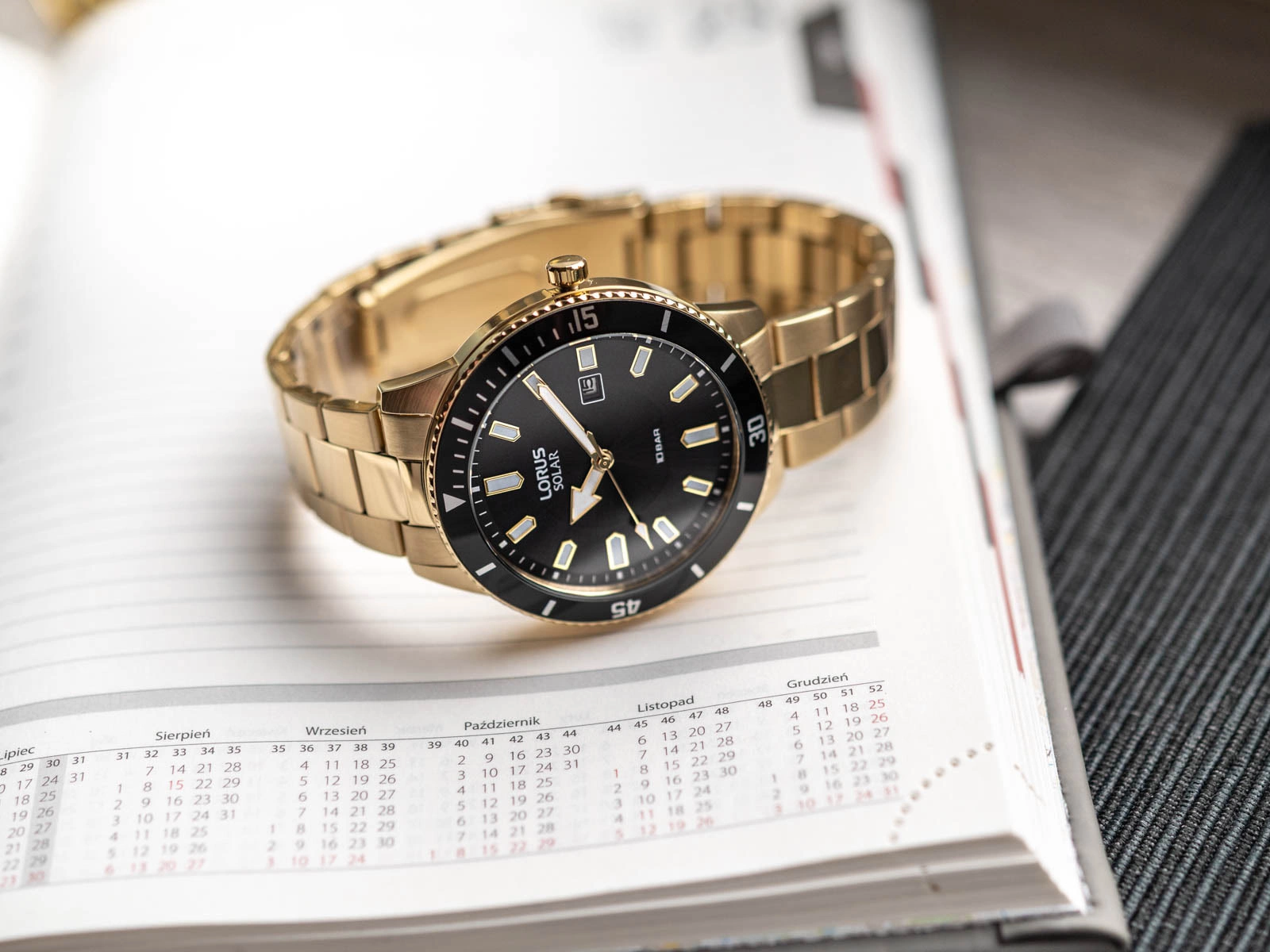 Lorus RX308AX9 Solar to wyjątkowy zegarek męski, który doskonale łączy klasyczną elegancję z nowoczesną funkcjonalnością. Zaprojektowany z myślą o wymagających użytkownikach, oferuje nie tylko stylowy wygląd, ale także nowatorskie rozwiązania technologiczne. Sercem tego modelu jest niezwykle precyzyjny mechanizm kwarcowy zasilany energią słoneczną, który czerpie moc z naturalnego i sztucznego światła dzięki zintegrowanemu panelowi słonecznemu umieszczonemu dyskretnie na tarczy. Rozwiązanie to eliminuje konieczność regularnej wymiany baterii, czyniąc zegarek bardziej ekologicznym i niezawodnym w codziennym użytkowaniu. Koperta oraz elegancka bransoleta zostały wykonane z wysokiej jakości stali nierdzewnej w ciepłym, złotym odcieniu. Wykończenie to nadaje zegarkowi ponadczasowy charakter i uniwersalność, dzięki czemu z łatwością dopasowuje się zarówno do stylizacji codziennych, jak i formalnych. Czarna tarcza z delikatnym połyskiem subtelnie kontrastuje ze złoto-białymi indeksami i wskazówkami, co nie tylko przyciąga wzrok, ale również gwarantuje doskonałą czytelność w każdych warunkach oświetleniowych.