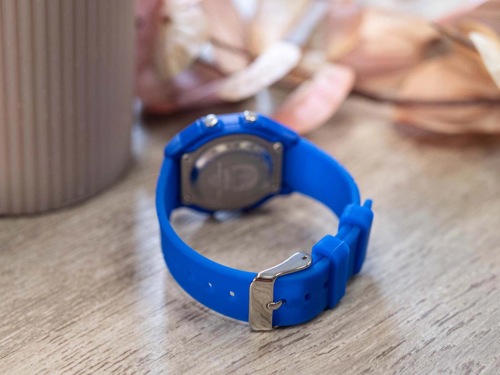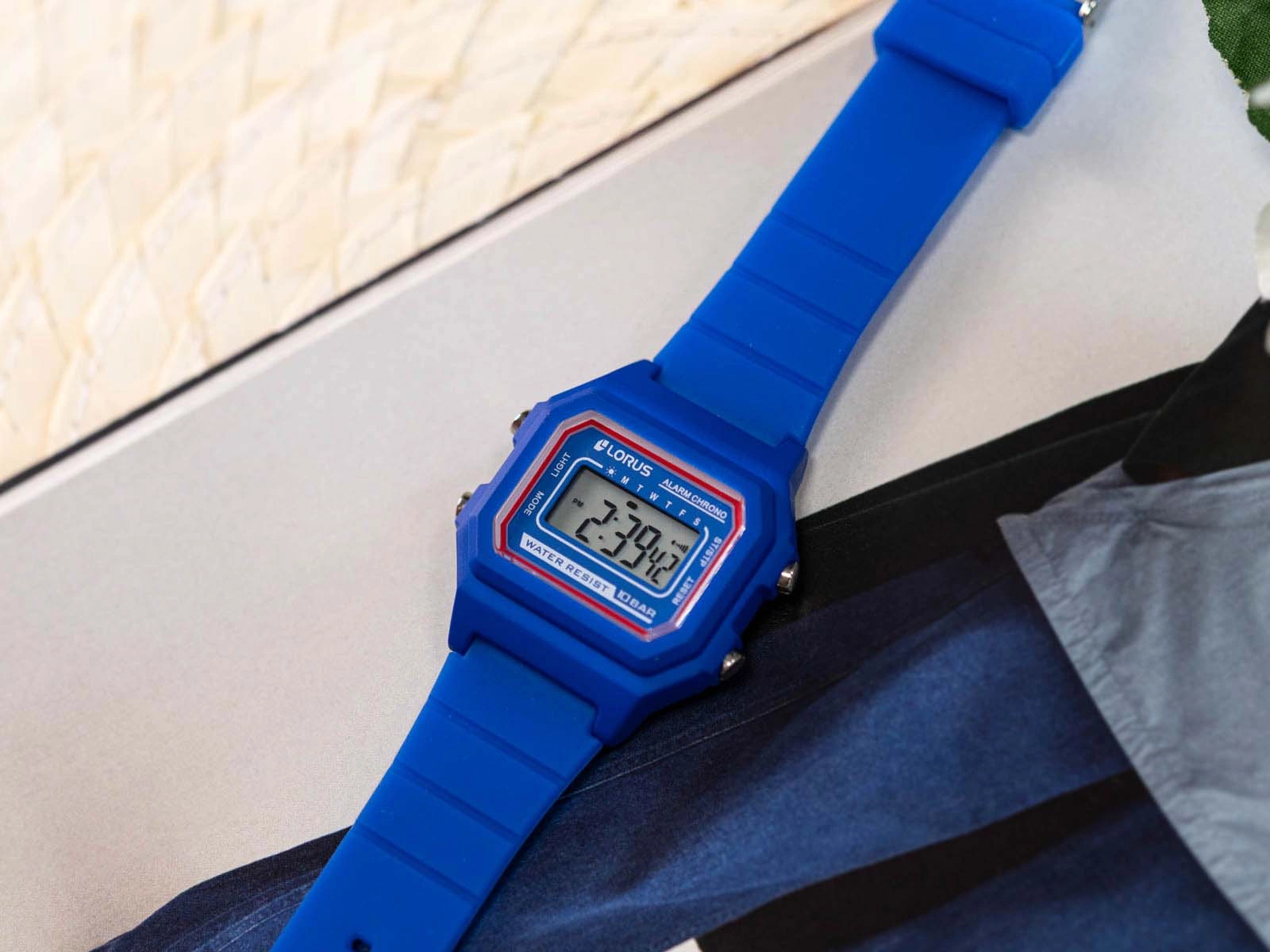 Lorus R2319NX9 Kids to zegarek stworzony z myślą o młodych miłośnikach aktywności i przygód. Jego nowoczesny, sportowy design w żywej niebieskiej tonacji świetnie wkomponuje się w codzienne, dziecięce stylizacje, dodając im energii i charakteru. Lekka koperta oraz elastyczny pasek wykonane zostały z trwałego, odpornego na uszkodzenia tworzywa sztucznego, co gwarantuje komfort noszenia nawet przez cały dzień – bez uczucia ucisku czy ograniczenia ruchów. Zegarek nie tylko świetnie wygląda, ale również zaskakuje swoją funkcjonalnością. Na czytelnym, cyfrowym wyświetlaczu znajdziemy szereg praktycznych rozwiązań: datownik pokazujący aktualny dzień miesiąca, precyzyjny stoper z dokładnością do 1/100 sekundy, alarm oraz funkcję sygnału dźwiękowego o każdej pełnej godzinie. Intuicyjna obsługa dzięki bocznym przyciskom pozwala na szybkie przełączanie się między trybami – nawet podczas zabawy czy treningu.