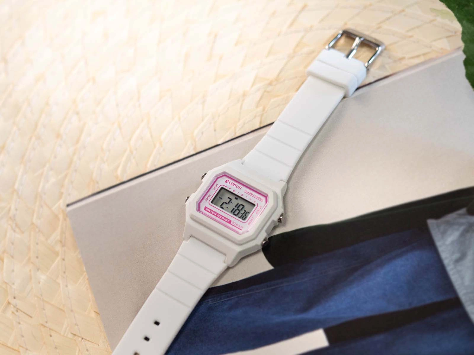 Lorus R2321NX9 Kids to zegarek zaprojektowany z myślą o dzieciach, które są pełne energii i uwielbiają aktywnie spędzać czas. Jego sportowy, nowoczesny wygląd przyciąga uwagę – biała kolorystyka połączona z subtelnymi różowymi detalami na tarczy nadaje mu lekkości, a jednocześnie wyróżnia się wśród dziecięcych dodatków. To model, który doskonale dopasuje się do codziennych stylizacji – zarówno tych szkolnych, jak i weekendowych. Zegarek wykonano z solidnego tworzywa sztucznego, które jest jednocześnie trwałe i lekkie. Miękki, elastyczny pasek dobrze przylega do nadgarstka, nie krępując ruchów i zapewniając komfort przez cały dzień – nawet podczas zabawy, biegania czy uprawiania sportu. Dzięki temu model świetnie sprawdzi się na co dzień i w ruchu.