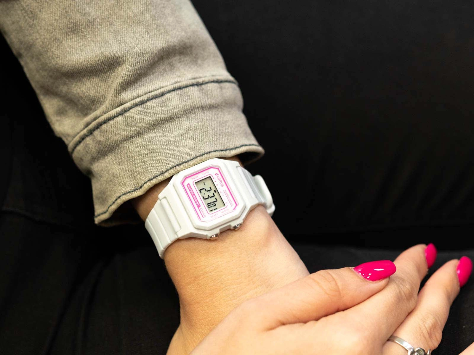 Funkcjonalność tego zegarka to jego kolejna mocna strona. Na przejrzystym, cyfrowym wyświetlaczu znajdują się przydatne opcje, takie jak datownik pokazujący aktualny dzień miesiąca, dokładny stoper (z dokładnością do 1/100 sekundy), alarm oraz sygnał dźwiękowy, który można ustawić na pełne godziny. Przełączanie się między funkcjami jest proste i intuicyjne – wystarczy skorzystać z wygodnie rozmieszczonych przycisków po bokach koperty. Na szczególną uwagę zasługuje wysoka klasa wodoszczelności – aż 10ATM, co oznacza, że zegarek bez problemu można zabrać na basen, plażę czy letni wyjazd. Pływanie, zabawy w wodzie czy deszcz nie stanowią żadnego zagrożenia dla mechanizmu. Lorus R2321NX9 Kids to praktyczny, trwały i estetyczny czasomierz, który z łatwością dopasuje się do stylu każdego dziecka. Świetnie sprawdzi się jako prezent – zarówno dla dziewczynki, która lubi ładne dodatki, jak i dla aktywnego dziecka, które potrzebuje wytrzymałego zegarka na co dzień.