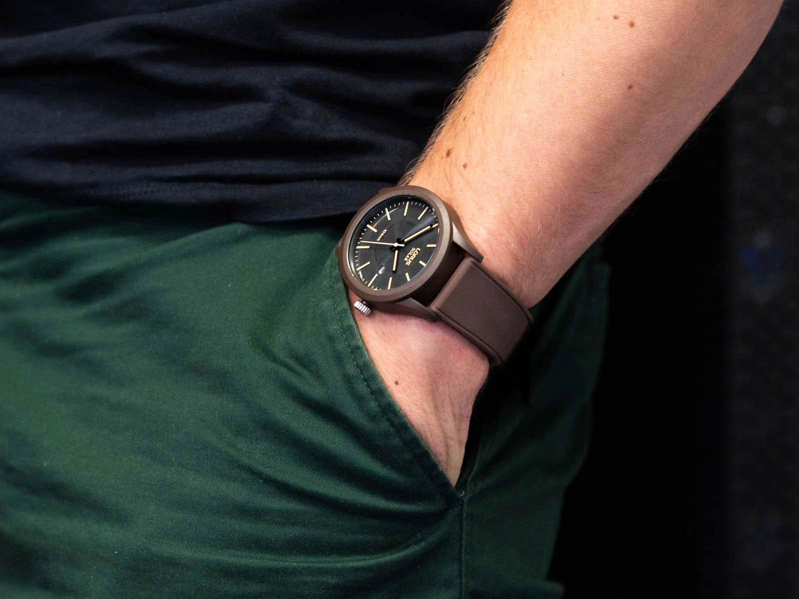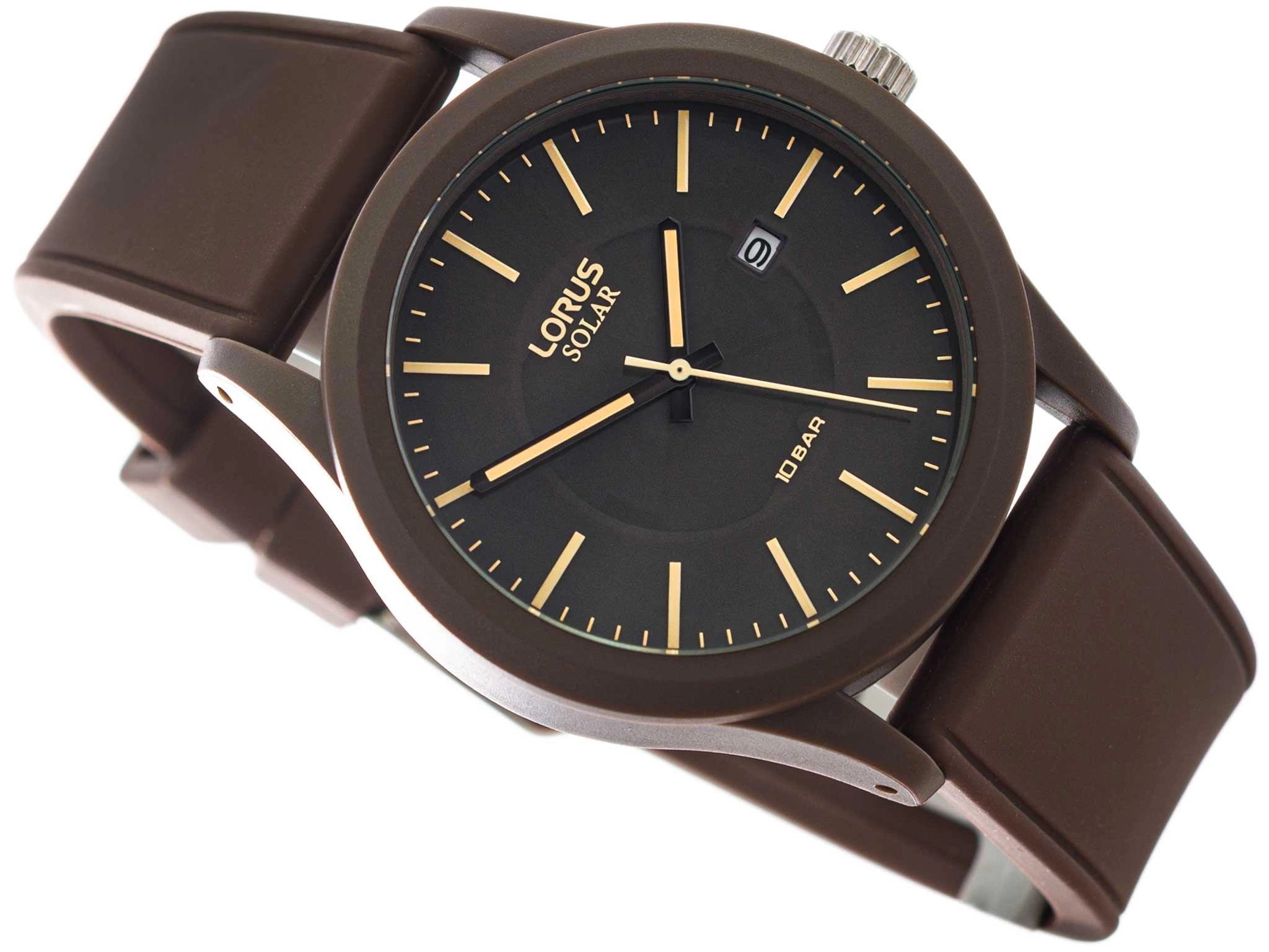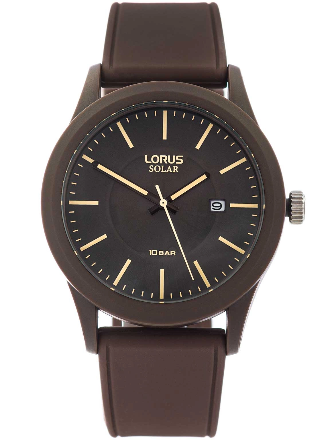 Lorus RX307AX9 Solar to zegarek zaprojektowany z myślą o mężczyznach, którzy cenią klasyczny styl połączony ze sportową funkcjonalnością. Utrzymany w jednolitej, brązowej kolorystyce, prezentuje się elegancko, a jednocześnie nowocześnie – sprawdzając się zarówno na co dzień, jak i w bardziej swobodnych stylizacjach. Model wyposażony jest w technologię solarną – panele umieszczone na tarczy pochłaniają światło i przekształcają je w energię, eliminując konieczność cyklicznej wymiany baterii. To wygodne i ekologiczne rozwiązanie dla osób ceniących praktyczność. Zegarek posiada lekką kopertę osadzoną na wygodnym, elastycznym pasku z wysokiej jakości tworzywa sztucznego. Pasek doskonale dopasowuje się do nadgarstka, zapewniając komfort przez cały dzień. Na ciemnej tarczy znajdują się wyraziste, żółte indeksy w układzie pionowym, które gwarantują łatwy i szybki odczyt godziny. Dodatkowym udogodnieniem jest datownik umieszczony przy godzinie trzeciej.