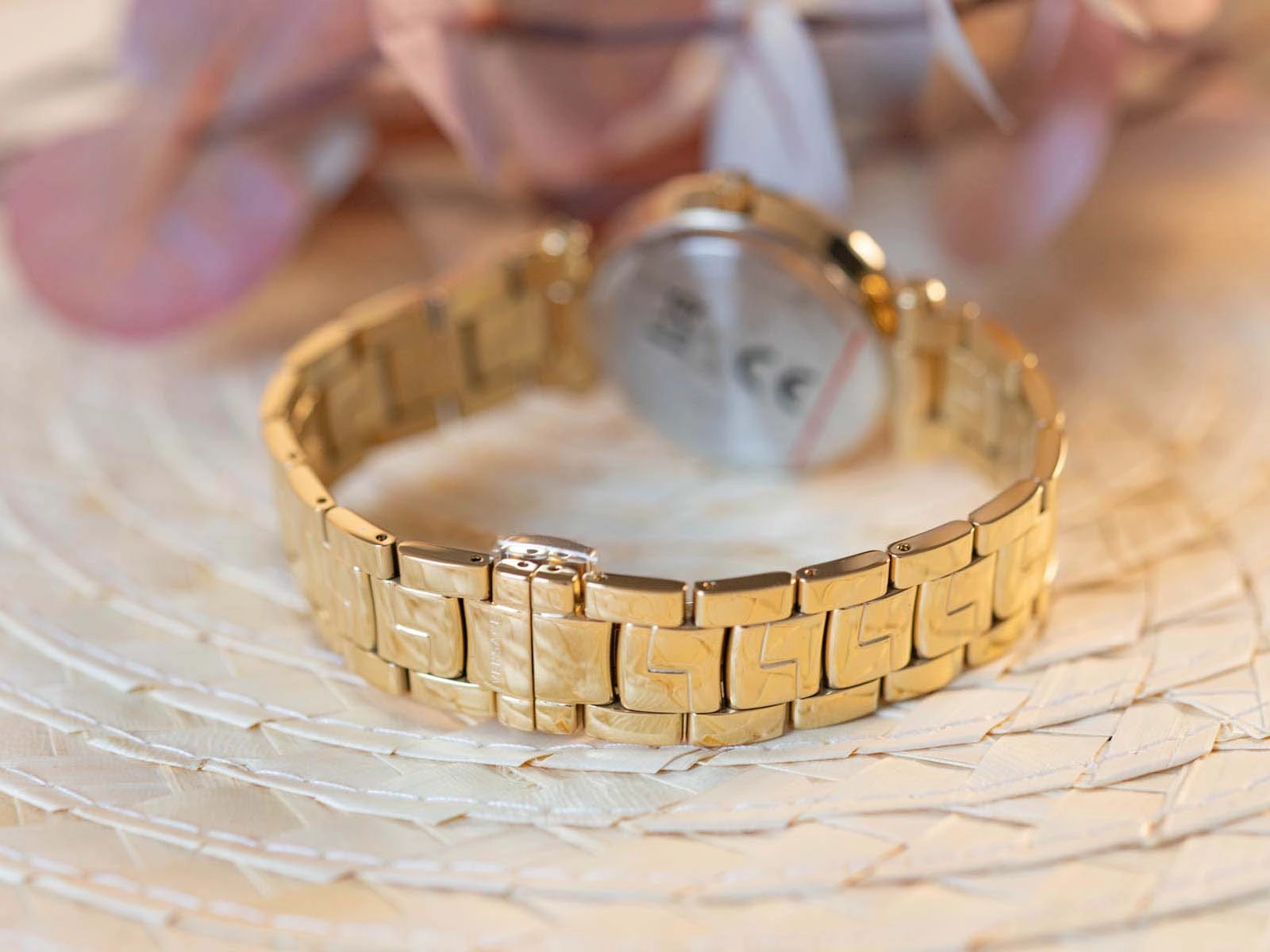 Versace VE2L00621 Revive to wyrafinowany przykład współczesnego zegarmistrzostwa, w którym klasyczne piękno spotyka się z charakterystycznym dla marki Versace blaskiem i śmiałą estetyką. Smukła koperta w ciepłym odcieniu złota została wykonana z wysokogatunkowej stali szlachetnej, której polerowane powierzchnie podkreślają biżuteryjny charakter tego modelu. Harmonijna forma koperty płynnie przechodzi w dopasowaną bransoletę, utrzymaną w tej samej tonacji i zakończoną eleganckim zapięciem motylkowym, które zapewnia zarówno komfort noszenia, jak i nieskazitelny wygląd nadgarstka. Centralnym punktem kompozycji pozostaje granatowa tarcza o satynowym, delikatnie szczotkowanym wykończeniu, która subtelnie odbija światło i tworzy efekt głębi. Na tle chłodnej kolorystyki granatu wyraziście prezentują się złote indeksy oraz wskazówki, dodając całości eleganckiego rytmu i wizualnej przejrzystości. Na godzinie dwunastej umieszczono trójwymiarowy emblemat Meduzy, który nawiązuje do mitologicznych inspiracji marki. Tarcza została zabezpieczona szafirowym szkłem, którego wyjątkowa twardość chroni ją przed zarysowaniami, gwarantując trwałość i niezmienny blask przez wiele sezonów. Sercem modelu Versace VE2L00621 Revive jest szwajcarski mechanizm kwarcowy, oferujący precyzję działania i niezawodność. Zastosowana technologia nie tylko wzmacnia użytkową stronę czasomierza, ale również potwierdza jego przynależność do świata luksusowych dodatków, w których forma i funkcja są ze sobą nierozerwalnie związane. Versace VE2L00621 Revive to zegarek, który dzięki swojej subtelnej elegancji i klasycznemu profilowi idealnie odnajduje się zarówno w formalnych zestawieniach, jak i w codziennych, bardziej swobodnych stylizacjach. To nie tylko element garderoby, ale wyraz indywidualnego stylu i świadomego wyboru, który odzwierciedla uznanie dla detalu, rzemiosła i włoskiego dziedzictwa. Zaprezentowany w oryginalnym pudełku marki, model ten doskonale sprawdza się również jako wyjątkowy prezent, który łączy ponadczasową estetykę z luksusową funkcjonalnością.