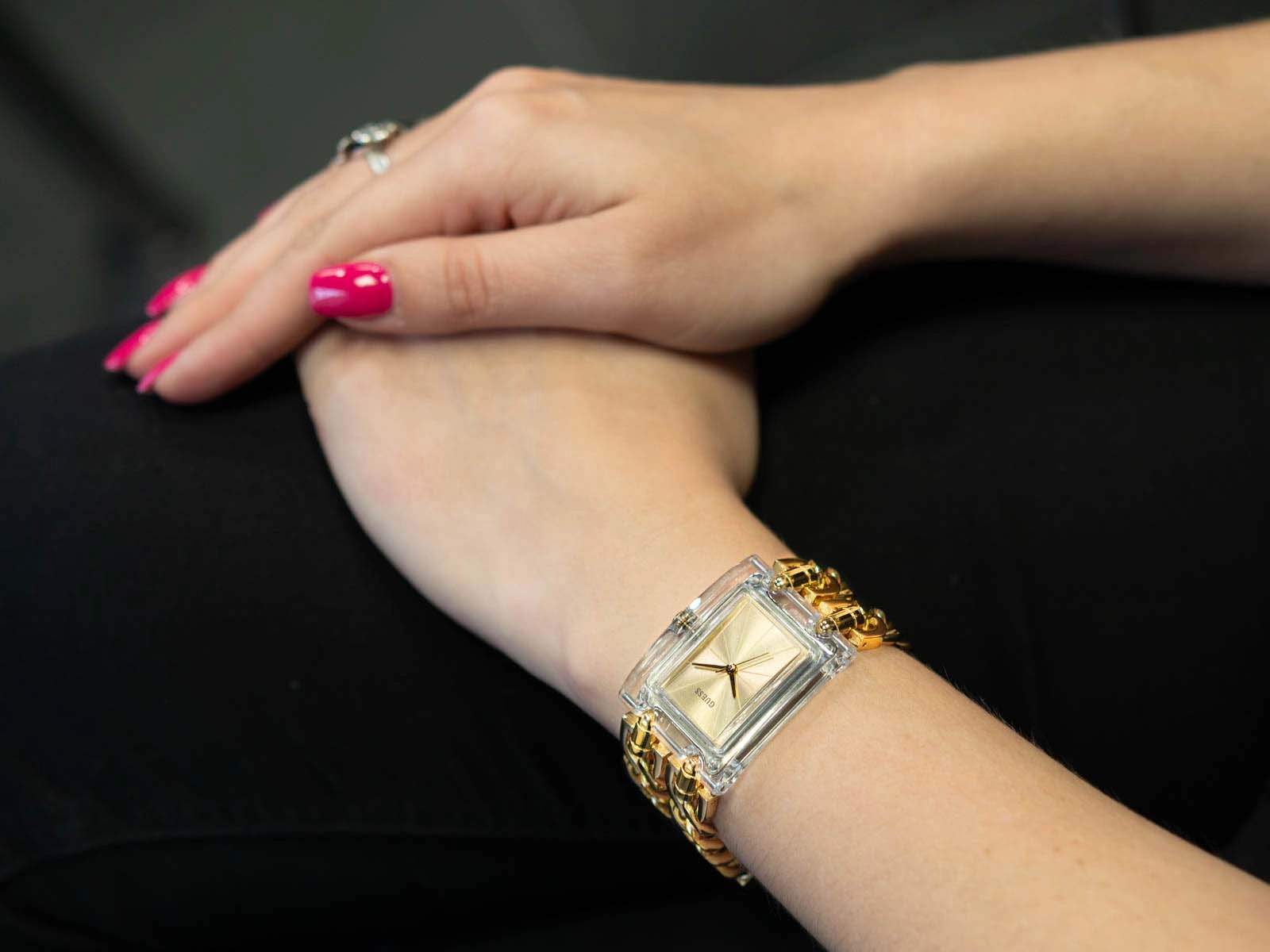 GUESS Mod Heavy Metal GW0669L1 to propozycja dla kobiet, które nie uznają kompromisów między funkcjonalnością a wyrazistym stylem. Ten wyjątkowy model łączy w sobie nowoczesne wzornictwo z nutą biżuteryjnego glamour, stając się nie tylko narzędziem do odmierzania czasu, ale również wyrazistym akcentem stylizacji. Design zegarka to harmonijne połączenie złotej kolorystyki z transparentną kopertą wykonaną z trwałego tworzywa sztucznego – ten zabieg stylistyczny dodaje lekkości i współczesnego charakteru. Szeroka bransoleta w formie podwójnego łańcucha przyciąga wzrok i tworzy efektowną, kobiecą kompozycję, idealną do noszenia zarówno na co dzień, jak i podczas specjalnych okazji.