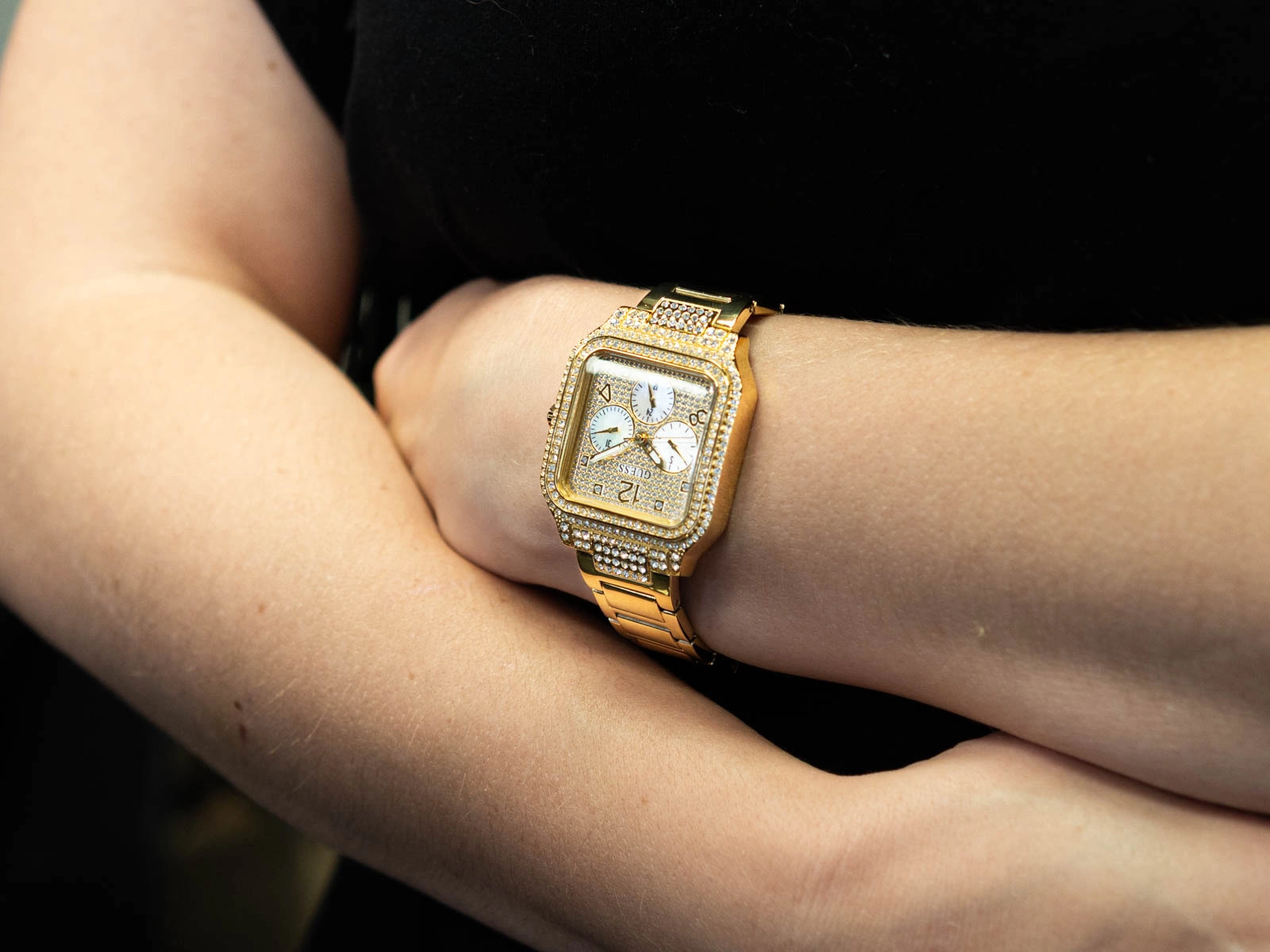 Zegarek wieńczy połyskująca bransoleta ze stali nierdzewnej w złotym tonie, której precyzyjnie zaprojektowane ogniwa płynnie układają się na nadgarstku, zapewniając wygodę noszenia i luksusowy wygląd. Każdy element tej kompozycji został przemyślany tak, by tworzyć dodatek, który zachwyca niezależnie od okazji. Guess Deco to idealna propozycja dla kobiet, które nie boją się błyszczeć — pewnych siebie, świadomych swojego stylu i stawiających na jakość. Ten model z łatwością dopełni zarówno codzienną stylizację, jak i elegancki wieczorowy look. Zapakowany w markowe, oryginalne pudełko, będzie doskonałym prezentem, który podkreśli wyjątkowość każdej okazji.