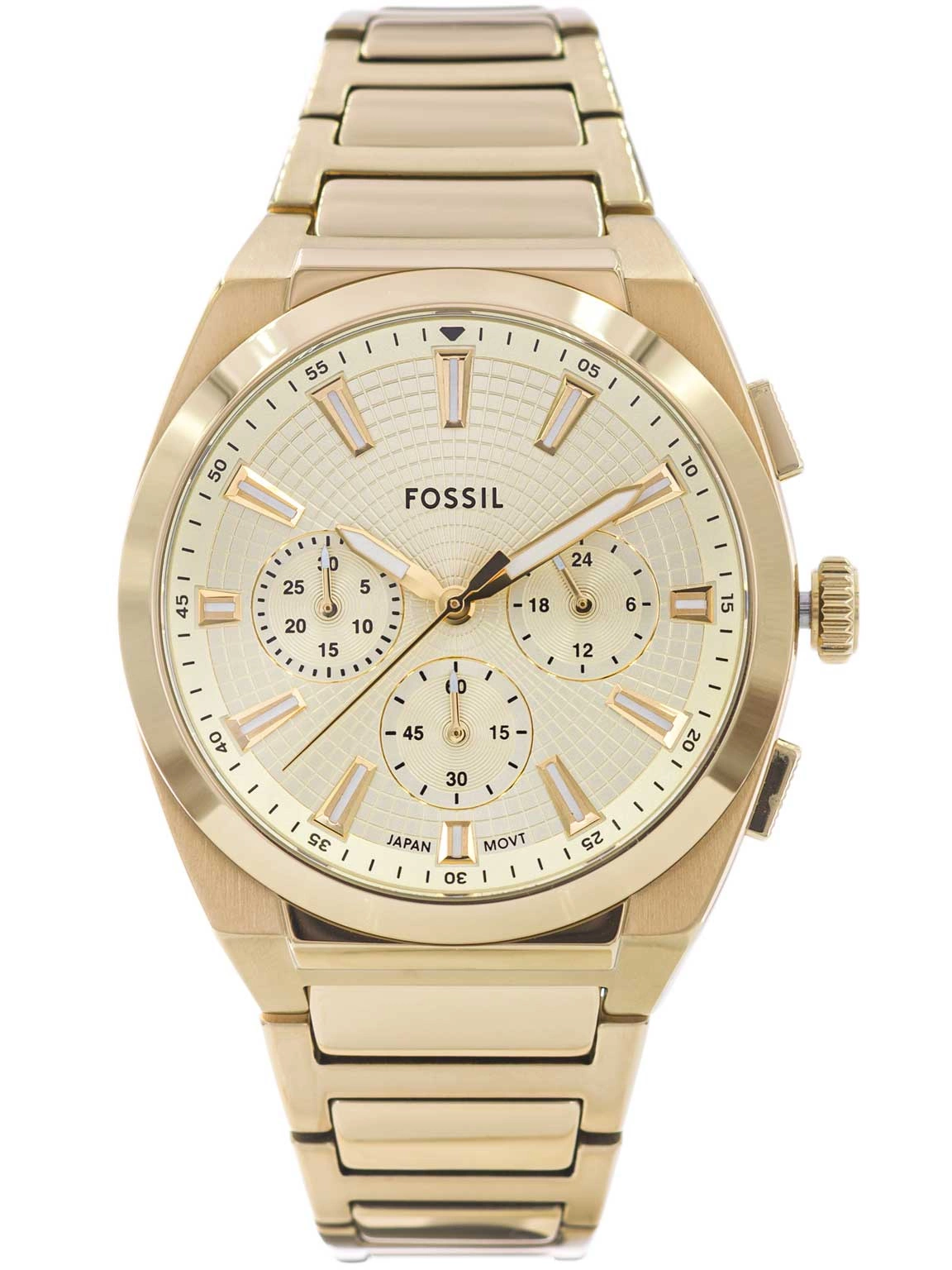- Zegarek Męski Fossil Everett Chronograph FS6119 złoty na bransolecie. Posiada funkcje chronografu oraz neobrite.