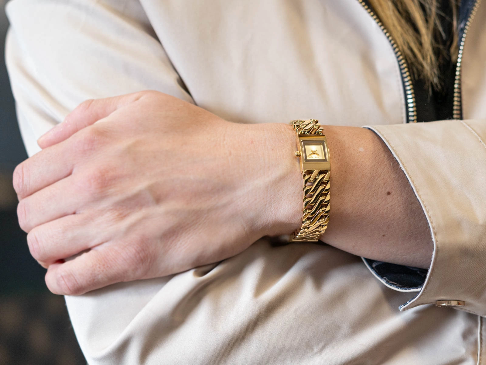 Michael Kors MK4907 Darrington to elegancki i efektowny zegarek stworzony z myślą o kobietach ceniących szykowną biżuterię. W całości utrzymany w złotej tonacji, został wykonany z wysokogatunkowej stali szlachetnej odpornej na korozję. Kwadratowa tarcza, niczym biżuteryjny detal, idealnie wpisuje się w delikatnie wydłużoną, prostokątną kopertę, tworząc harmonijny duet, który emanuje ponadczasową elegancją. Zegarek zawieszono na delikatnej, stylowej bransolecie, której długość można bez trudu dopasować do nadgarstka dzięki systemowi wypinanych ogniw