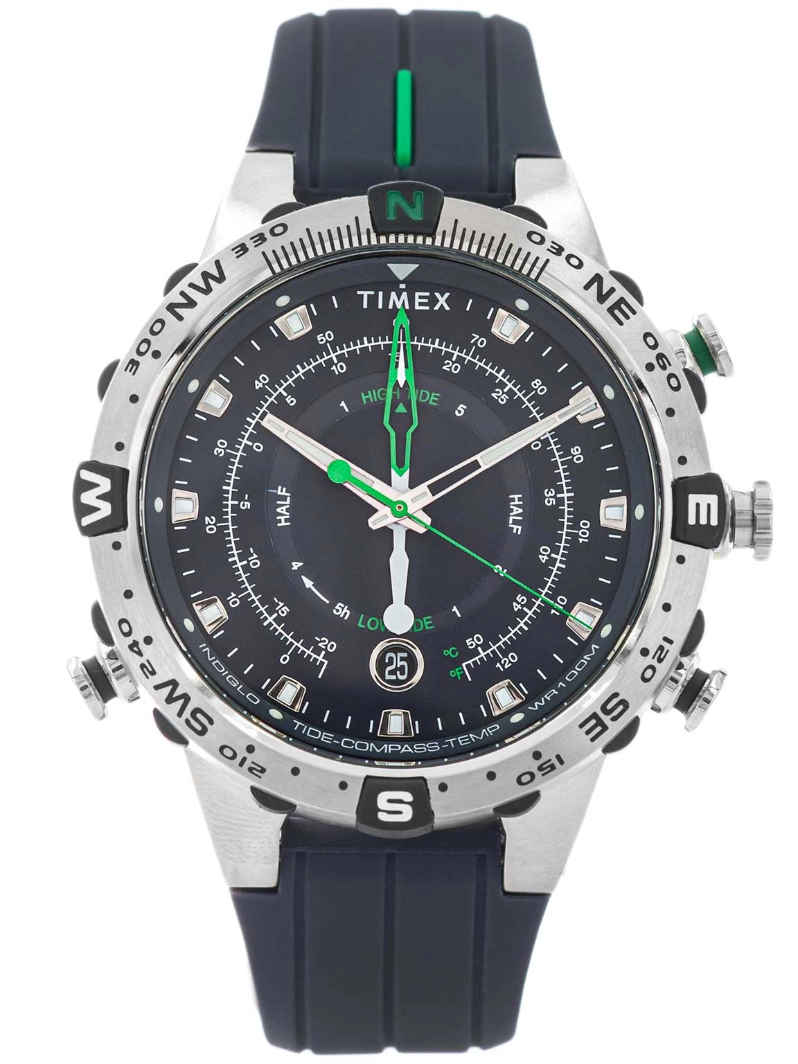- Wodoszczelny Timex TW2V22100 Expedition Tide-Temp-Compass granatowy na pasku, posiada funkcje takie jak kompas, termometr, wskaźnik pływów, datownik, podświetlenie, neobrite.