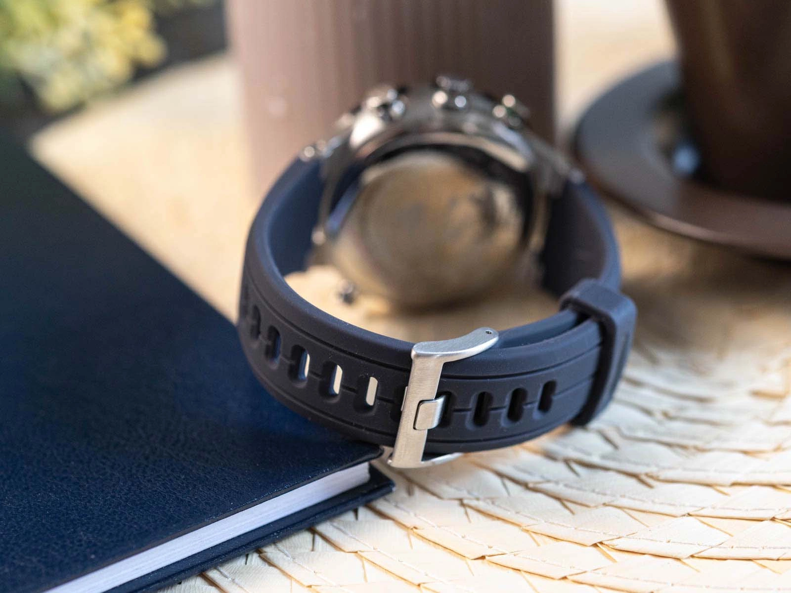 Timex TW2V22100 Expedition Tide-Temp-Compass to zegarek zaprojektowany z myślą o osobach, które nie uznają kompromisów między funkcjonalnością a estetyką. Surowa, wykonana ze stali szlachetnej koperta skrywa zaawansowany technologicznie mechanizm, a jej masywna forma koresponduje z praktycznym charakterem modelu. Granatowy pasek wykonany z elastycznego silikonu dobrze przylega do nadgarstka, zapewniając komfort podczas długotrwałego noszenia i aktywności w terenie. Jego matowe wykończenie i subtelna faktura podkreślają outdoorową tożsamość zegarka, jednocześnie wprowadzając spójność kolorystyczną z tarczą.