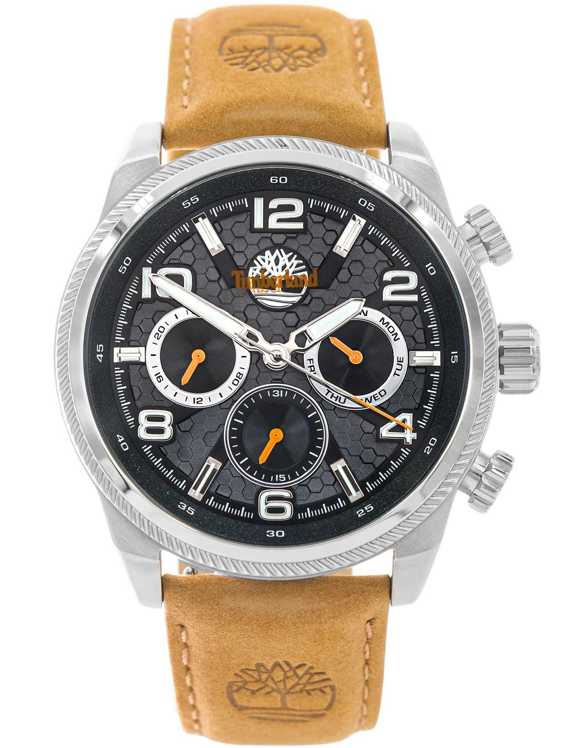 - Zegarek Męski Timberland TDWGF0028707 brązowy na pasku, posiada funkcję rozbudowanego datownika oraz neobrite.