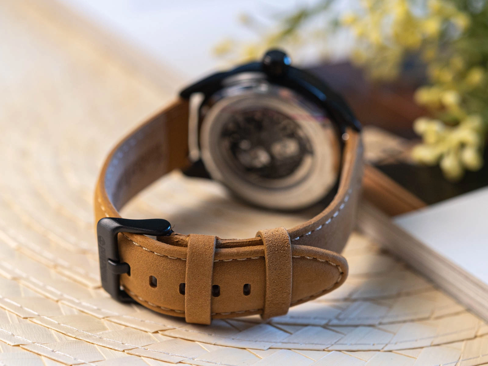 - Mechanizm: automatyczny. Mechanizm czerpie energię z ruchu ręki. Możliwość ręcznego nakręcania. Zegarek nie wymaga wymiany baterii, dzięki pracy automatycznego naciągu.