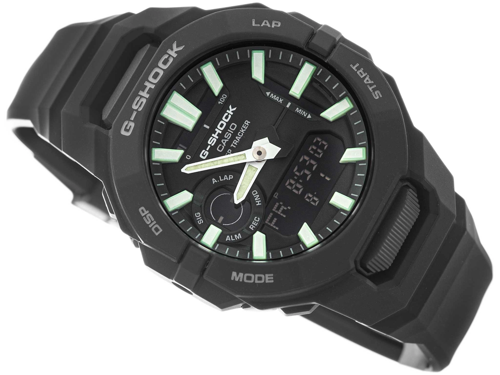 Casio G-Shock GBA-950-1AER oferuje również pełen zestaw klasycznych funkcji użytkowych. Zegarek wyposażono w stoper, timer, pięć niezależnych alarmów dziennych oraz sygnał pełnej godziny (SIG), który może informować użytkownika o upływie czasu w regularnych odstępach. Tryb Mute pozwala natomiast na całkowite wyciszenie dźwięków przycisków, co zwiększa dyskrecję w sytuacjach wymagających ciszy. Uzupełnieniem jest automatyczny kalendarz, który dostosowuje datę do długości miesiąca i lat przestępnych, eliminując konieczność ręcznego korygowania. Casio G-Shock GBA-950-1AER to model, który łączy funkcjonalność zegarka treningowego z wytrzymałością klasycznych modeli serii G-Shock. Zaprojektowany z myślą o codziennym użytkowaniu w ruchu, wpisuje się w potrzeby nowoczesnych sportowców i entuzjastów aktywnego trybu życia. To nie tylko zegarek, ale wszechstronny partner treningowy – solidny, inteligentny i gotowy na każde wyzwanie.
