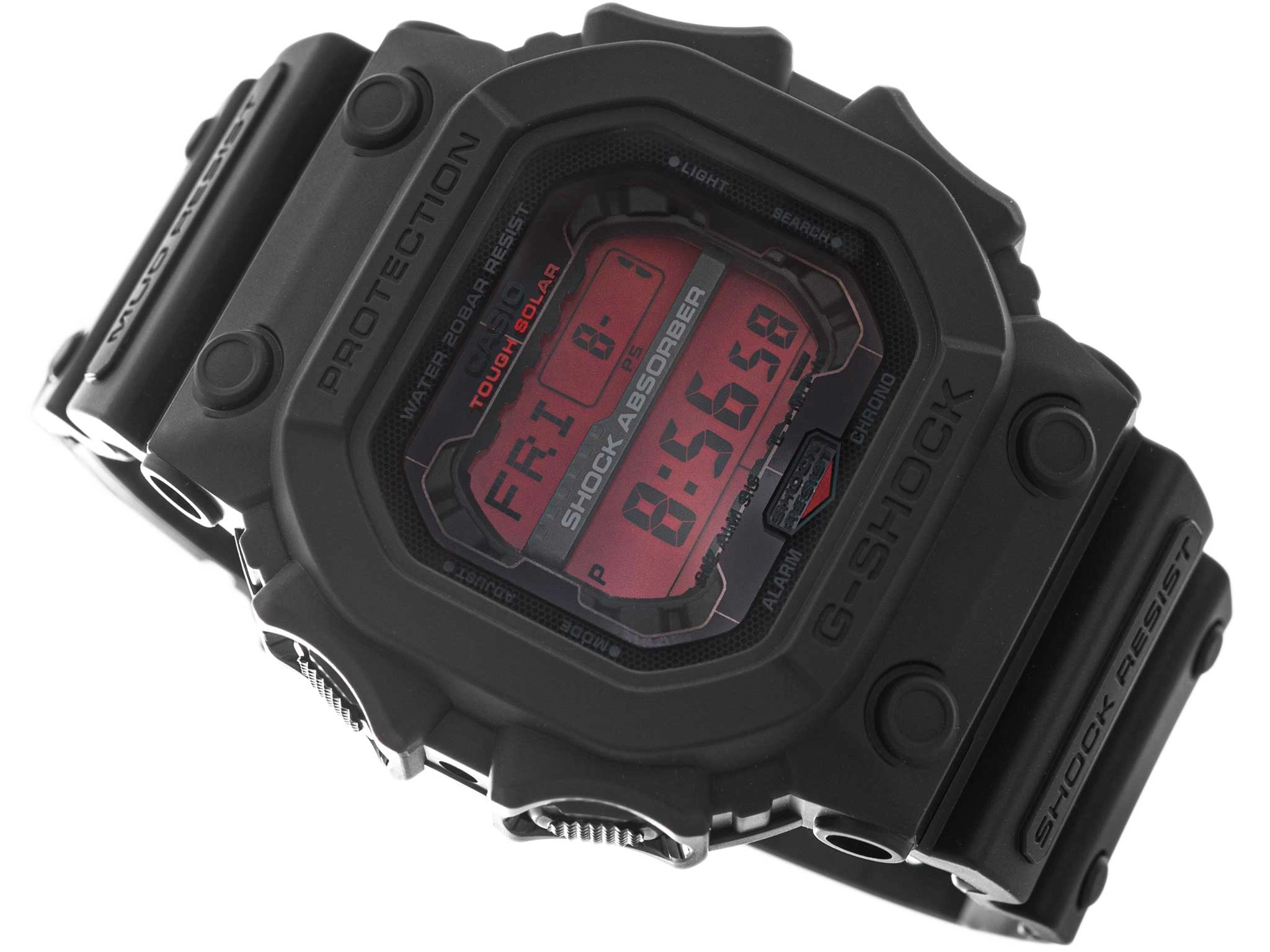 - Solarny Zegarek Męski Casio G-SHOCK GX-56BBR-1ER czarny na pasku, posiada funkcje takie jak czas światowy, stoper i datownik. Zegarek wodoszczelny.