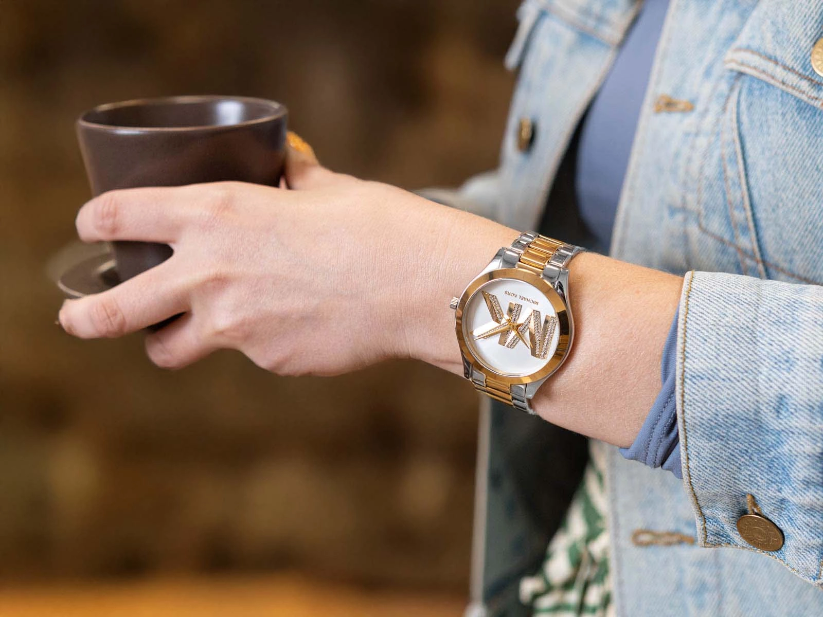 Michael Kors Slim Runway MK4735 to elegancki zegarek, stworzony z myślą o kobietach, które cenią subtelną biżuterię o ponadczasowym charakterze. Jego dwukolorowa bransoleta, łącząca odcienie złota i srebra, to doskonała opcja dla tych, które preferują klasyczne, a zarazem uniwersalne akcesoria. Zapięcie motylkowe, które zdobi bransoletę, jest nie tylko estetyczne, ale także funkcjonalne, zapewniając wygodę podczas zakładania zegarka. Tarcza zegarka w jasnym odcieniu przyciąga wzrok dzięki wypukłym inicjałom projektanta, które zostały subtelnie ozdobione drobnymi kryształkami. Daje to efekt trójwymiarowości, nadając całej kompozycji lekkości i finezji. Precyzyjny mechanizm kwarcowy, zasilany wymienną baterią, gwarantuje niezawodność i dokładność, czyniąc zegarek idealnym zarówno do codziennych stylizacji, jak i eleganckich okazji.