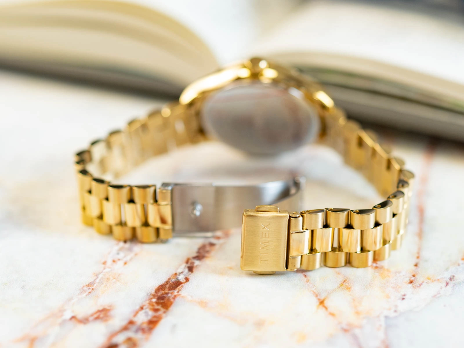 - Zegarek damski Timex TW2W85400 złoty na bransolecie. Posiada funkcję neobrite.