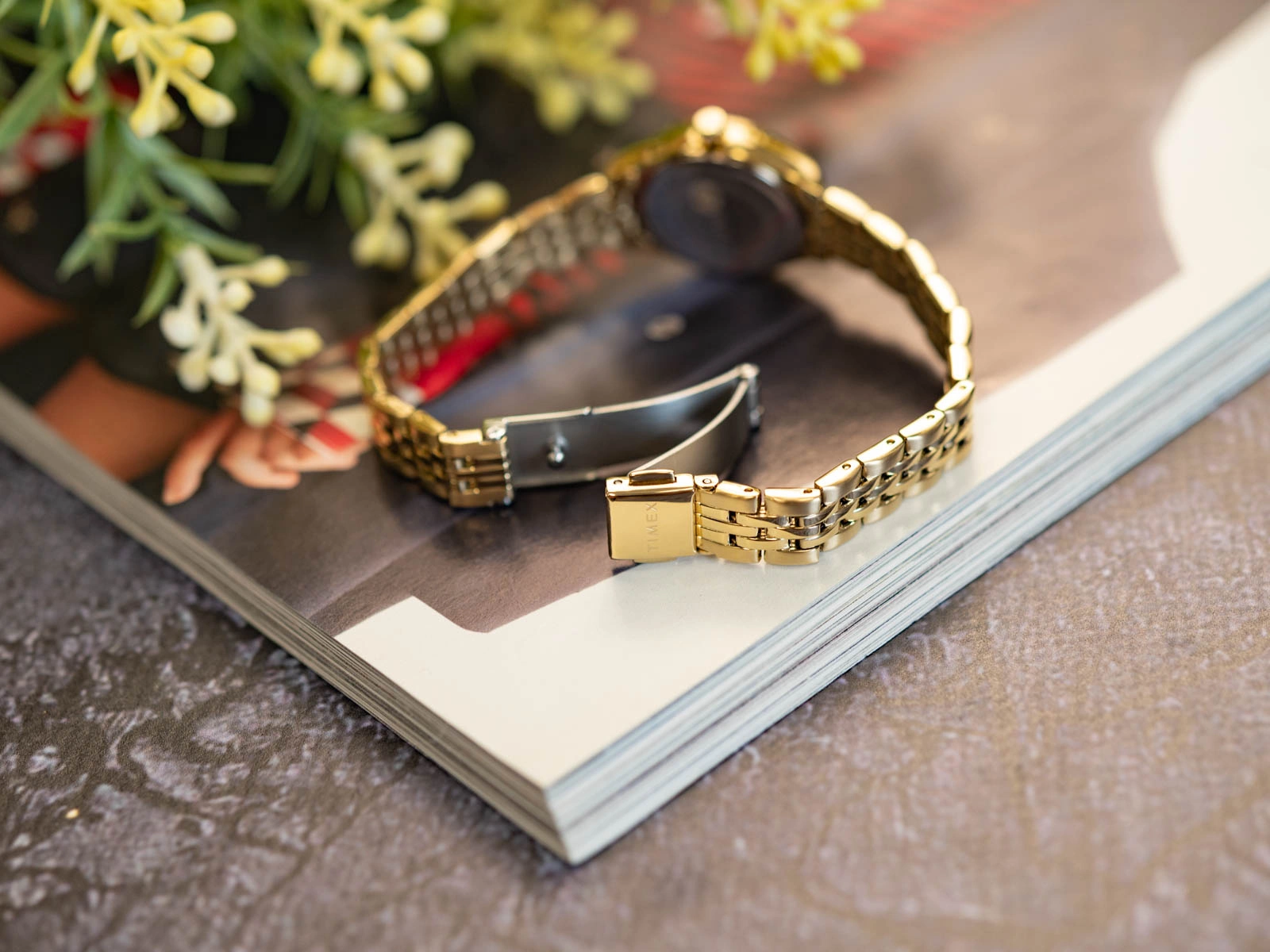 • Zegarek damski Timex TW2W91000 złoty na bransolecie. Posiada funkcję neobrite.