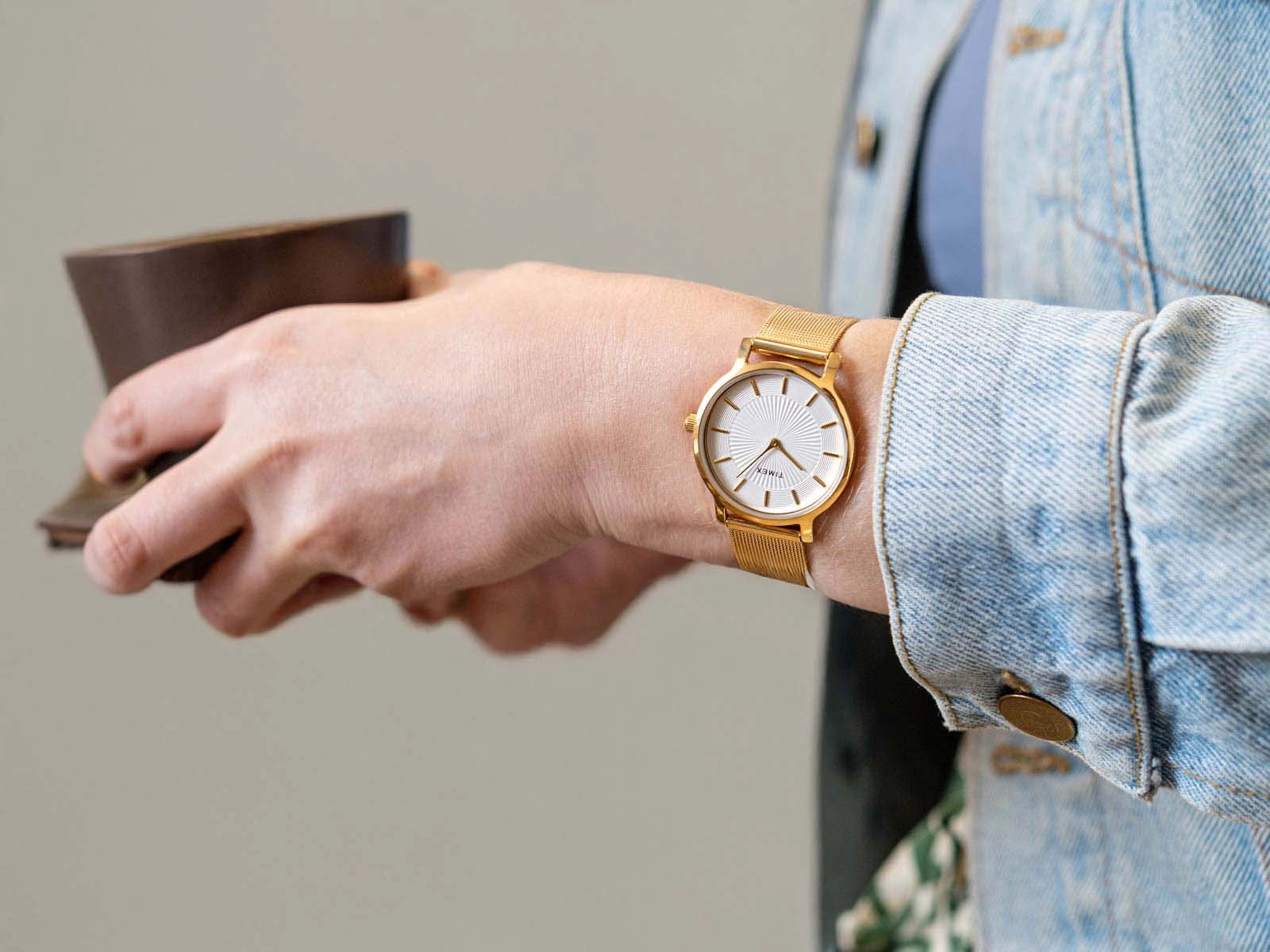 Timex TW2Y10300 Transcend to zegarek, w którym klasyczna harmonia formy spotyka się z nowoczesną elegancją. Smukła koperta w ciepłym odcieniu złota została starannie wyprofilowana, by subtelnie układać się na nadgarstku, a jej gładkie powierzchnie dyskretnie odbijają światło, podkreślając wyrafinowany charakter projektu. Złota bransoleta ze stali szlachetnej o delikatnym splocie idealnie współgra z całością, tworząc spójny, biżuteryjny akcent. Sercem kompozycji jest srebrna tarcza o chłodnym połysku, na której minimalistyczne, liniowe indeksy oraz smukłe wskazówki tworzą przejrzysty układ, sprzyjający łatwemu odczytowi czasu. Całość chroni odporne na zarysowania szkło mineralne, które zachowuje estetykę zegarka na dłużej. Precyzyjny mechanizm kwarcowy, zasilany baterią, zapewnia niezawodne działanie na co dzień. Timex Transcend TW2Y10300 to czasomierz, który łączy uniwersalny, ponadczasowy design z nutą luksusu, sprawdzając się zarówno jako dyskretny dodatek do codziennych stylizacji, jak i efektowne uzupełnienie eleganckiego stroju.