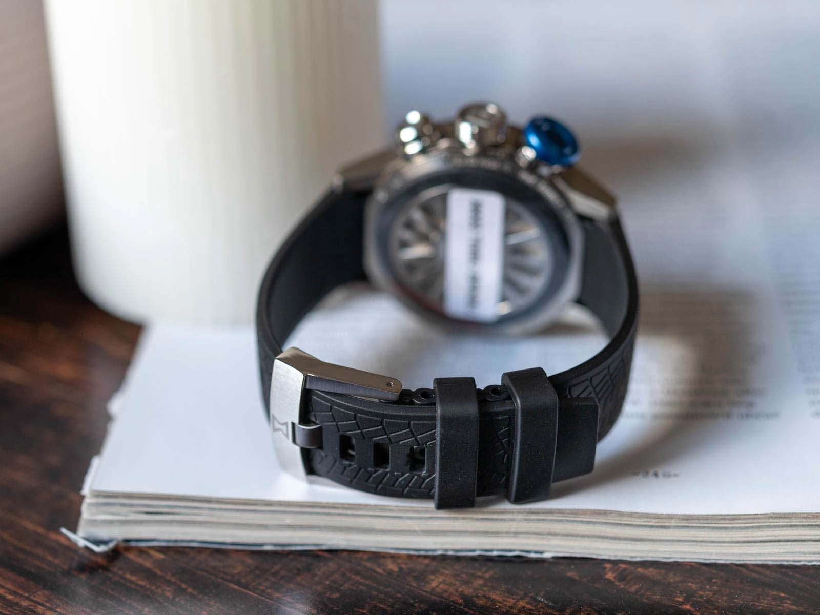 Brązowo-czarna tarcza z wyrazistymi indeksami i dużymi wskazówkami zapewnia doskonałą czytelność w każdych warunkach, a technologia neobrite umożliwia po wcześniejszym naświetleniu szybki i pewny odczyt czasu również po zmroku. Precyzyjny stoper umieszczony na tarczy pozwala na dokładne pomiary czasowe, co sprawia, że zegarek świetnie sprawdzi się także podczas treningów czy zawodów. Funkcjonalność uzupełnia subtelne okno datownika na godzinie szóstej, które dyskretnie podkreśla harmonijny charakter projektu. Całość wieńczy wytrzymały pasek, który zapewnia komfort noszenia i bezpieczne dopasowanie do nadgarstka w każdej sytuacji.