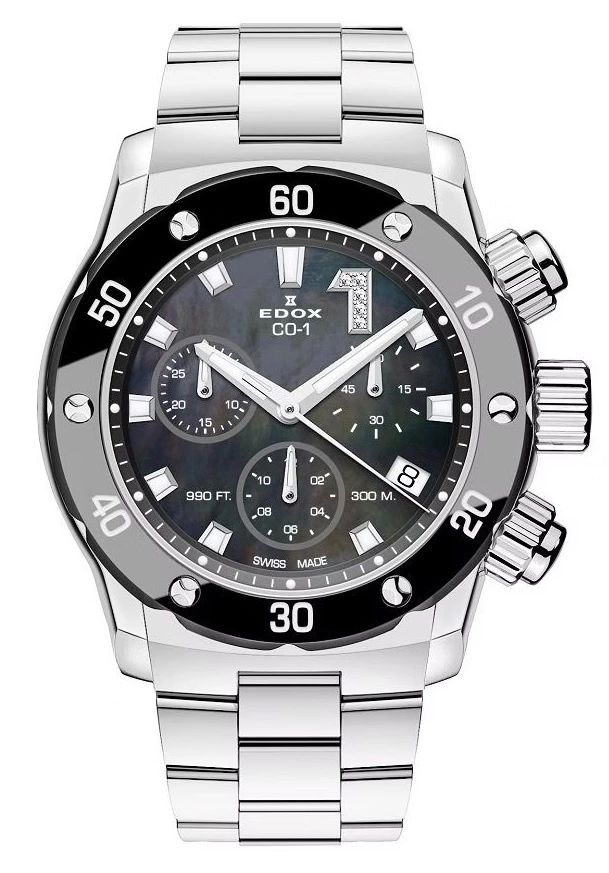 Centralnym punktem tego modelu jest czarna, perłowa tarcza o subtelnym, wielowymiarowym połysku, która mieni się w zależności od kąta padania światła. To tło dla starannie rozmieszczonych indeksów w tym dla wyróżnionej diamentami jedynki, które dodają zegarkowi luksusowego charakteru, zachowując przy tym sportową spójność projektu. Zintegrowany chronograf pozwala na dokładny pomiar odcinków czasu, a dzięki technologii neobrite wskazówki i indeksy po wcześniejszym naświetleniu pozostają czytelne nawet w warunkach ograniczonego oświetlenia. Dyskretnie umieszczony datownik oraz subtarcze wkomponowane w tarczę podkreślają jej harmonijną kompozycję.