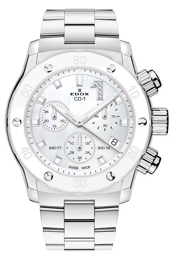 Centralnym punktem tego modelu jest jasna, perłowa tarcza o subtelnym, wielowymiarowym połysku, która mieni się w zależności od kąta padania światła. To tło dla starannie rozmieszczonych indeksów w tym dla wyróżnionej diamentami jedynki, które dodają zegarkowi luksusowego charakteru, zachowując przy tym sportową spójność projektu. Zintegrowany chronograf pozwala na dokładny pomiar odcinków czasu, a dzięki technologii neobrite wskazówki i indeksy po wcześniejszym naświetleniu pozostają czytelne nawet w warunkach ograniczonego oświetlenia. Dyskretnie umieszczony datownik oraz subtarcze wkomponowane w tarczę podkreślają jej harmonijną kompozycję.
