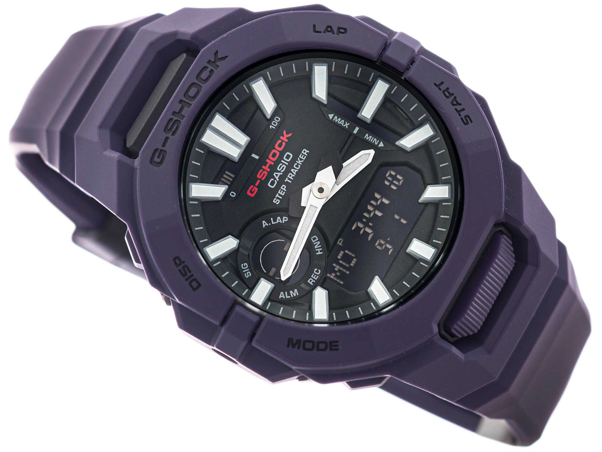 - Wodoszczelny Zegarek Męski Casio G-SHOCK GBA-950 2A fioletowy na pasku, posiada funkcje takie jak bluetooth, krokomierz, stoper i datownik.