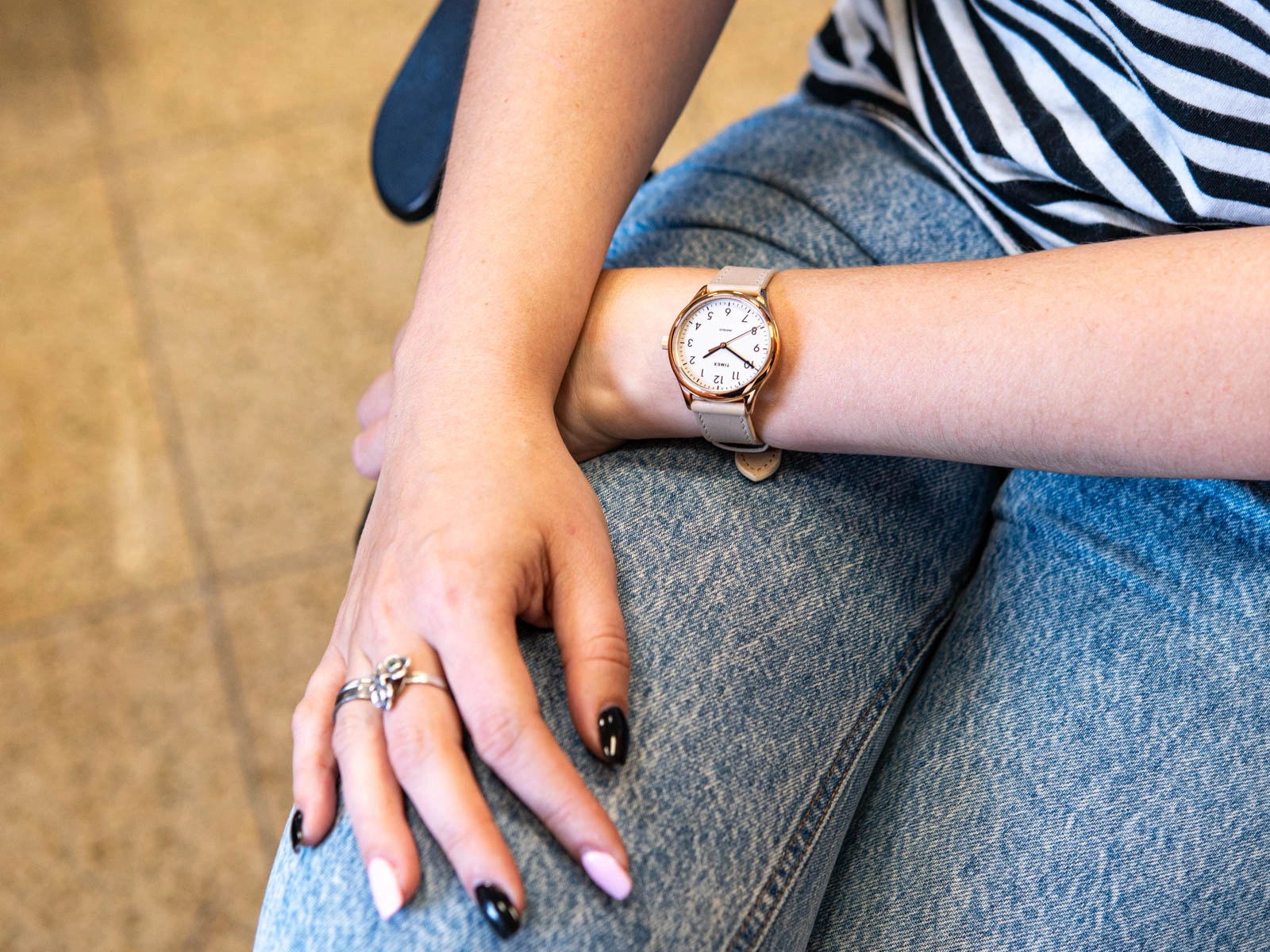 - Zegarek Damski Timex TW2T72400 beżowy na pasku. Posiada funkcję podświetlenia.