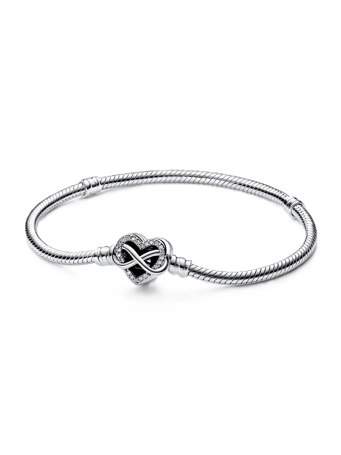 - Bransoletka damska o splocie wężykowym z zapięciem w kształcie serca z symbolem nieskończoności Pandora 592645C01-20 srebrna
