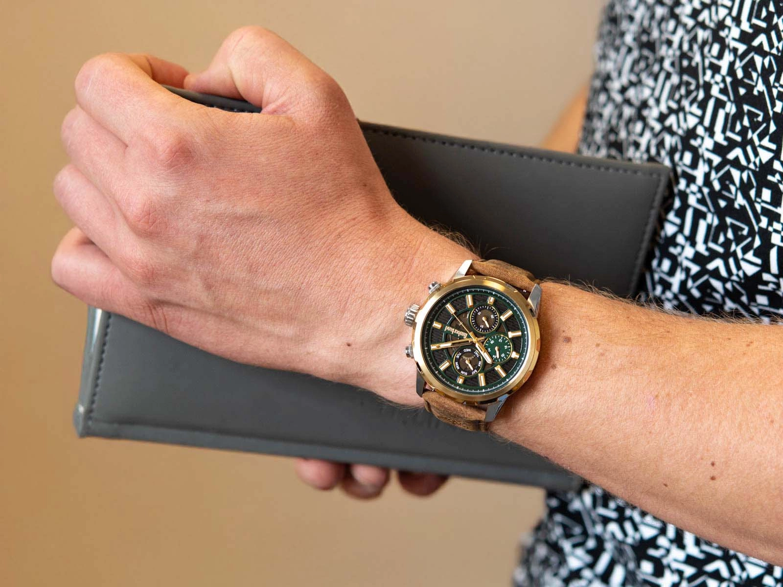 Zegarek Timberland TDWGF0056102 Classic wyróżnia się wyważonym charakterem: nie dominuje stylizacji, lecz subtelnie ją uzupełnia, harmonizując zarówno z casualowymi, jak i bardziej formalnymi zestawami ubrań. Starannie dopracowane detale – od delikatnego połysku koperty, przez wykończenie paska, po precyzyjne indeksy i subtarcze – świadczą o wysokiej jakości wykonania, będącej znakiem rozpoznawczym marki Timberland. Model ten jest nie tylko praktycznym dodatkiem, ale także eleganckim elementem garderoby, a zapakowany w estetyczne pudełko sygnowane logo producenta sprawia, że doskonale nadaje się na prezent.