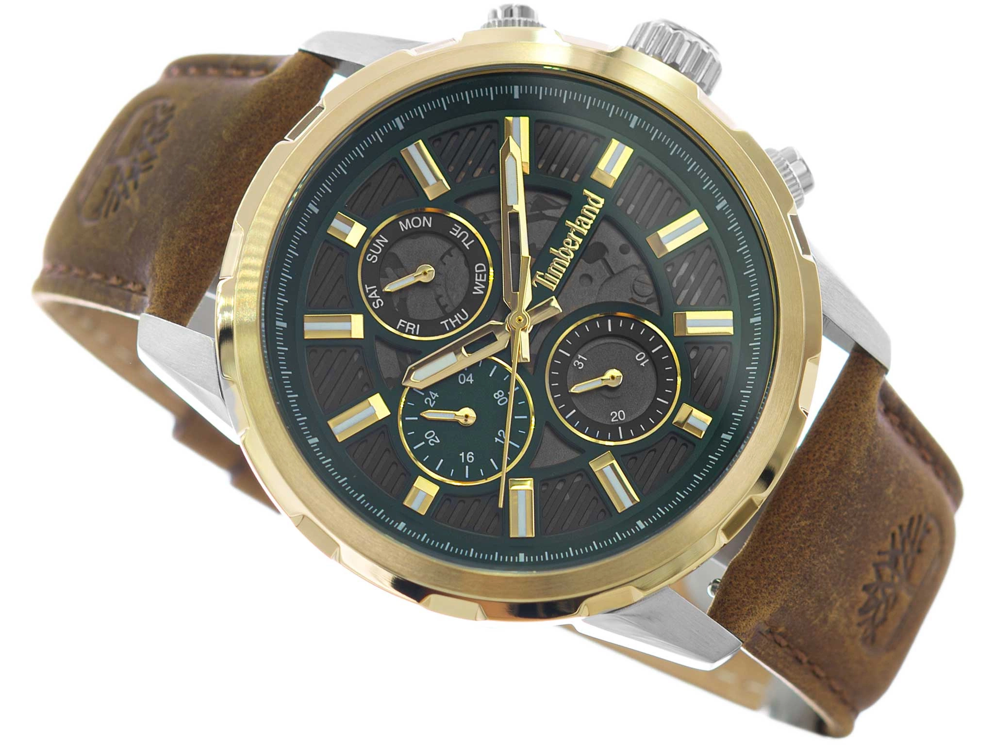 - Zegarek Męski Timberland TDWGF0056102 brązowy na pasku, posiada funkcję datownika oraz neobrite.