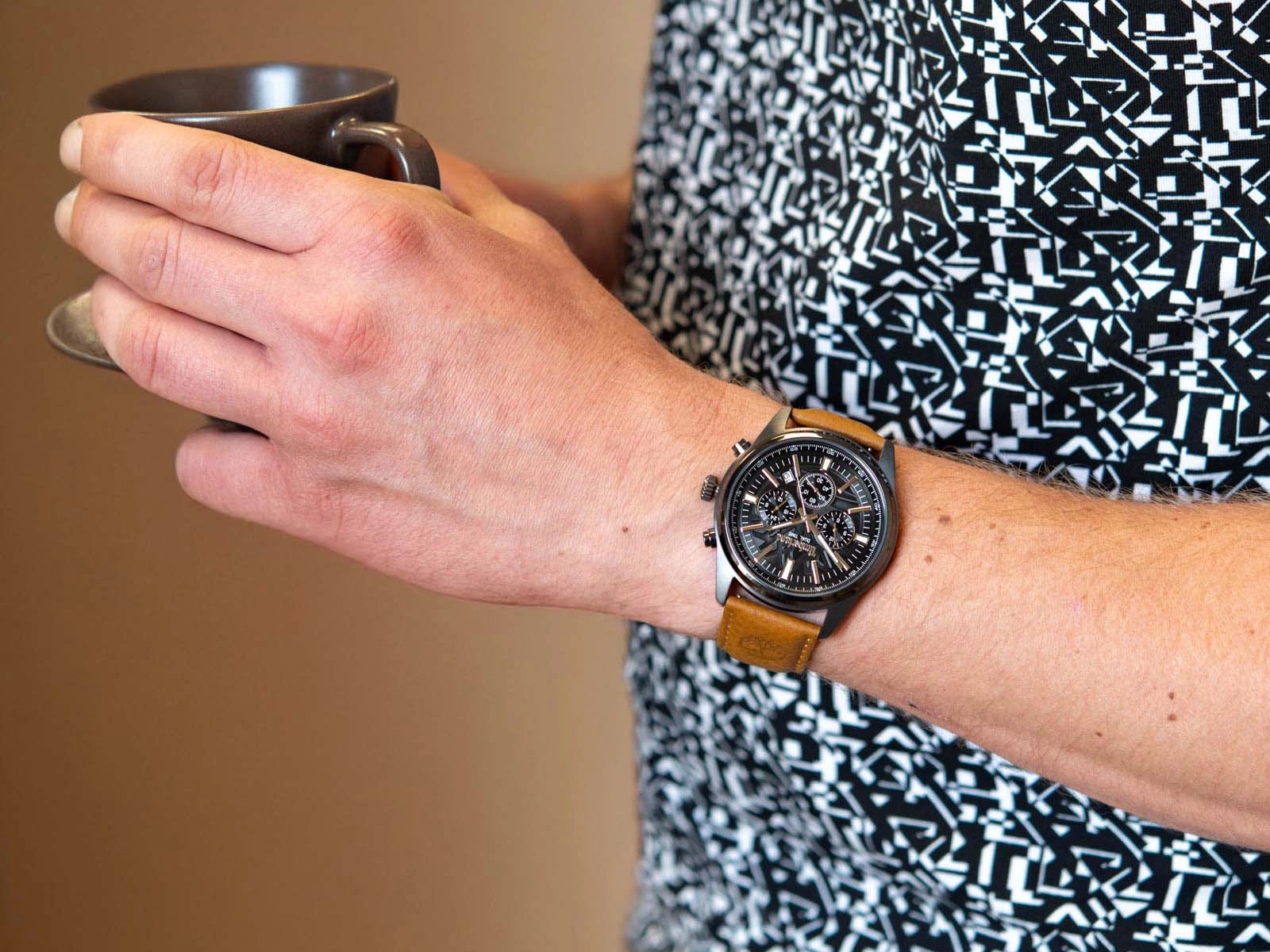 Timberland TDWGF0041205 Northbridge to zegarek, który z wyczuciem łączy funkcjonalność i ponadczasowy design, tworząc propozycję dla mężczyzn ceniących praktyczność i elegancki, codzienny charakter. Jego koperta, wykonana z trwałej stali szlachetnej w eleganckim grafitowym wykończeniu, nadaje całości nowoczesnego, męskiego wyrazu. Dopełnieniem jest pasek z naturalnej skóry w odcieniu brązu – miękki i przyjemny w dotyku, a jednocześnie solidny, z czasem zyskujący szlachetną patynę podkreślającą indywidualny charakter zegarka.