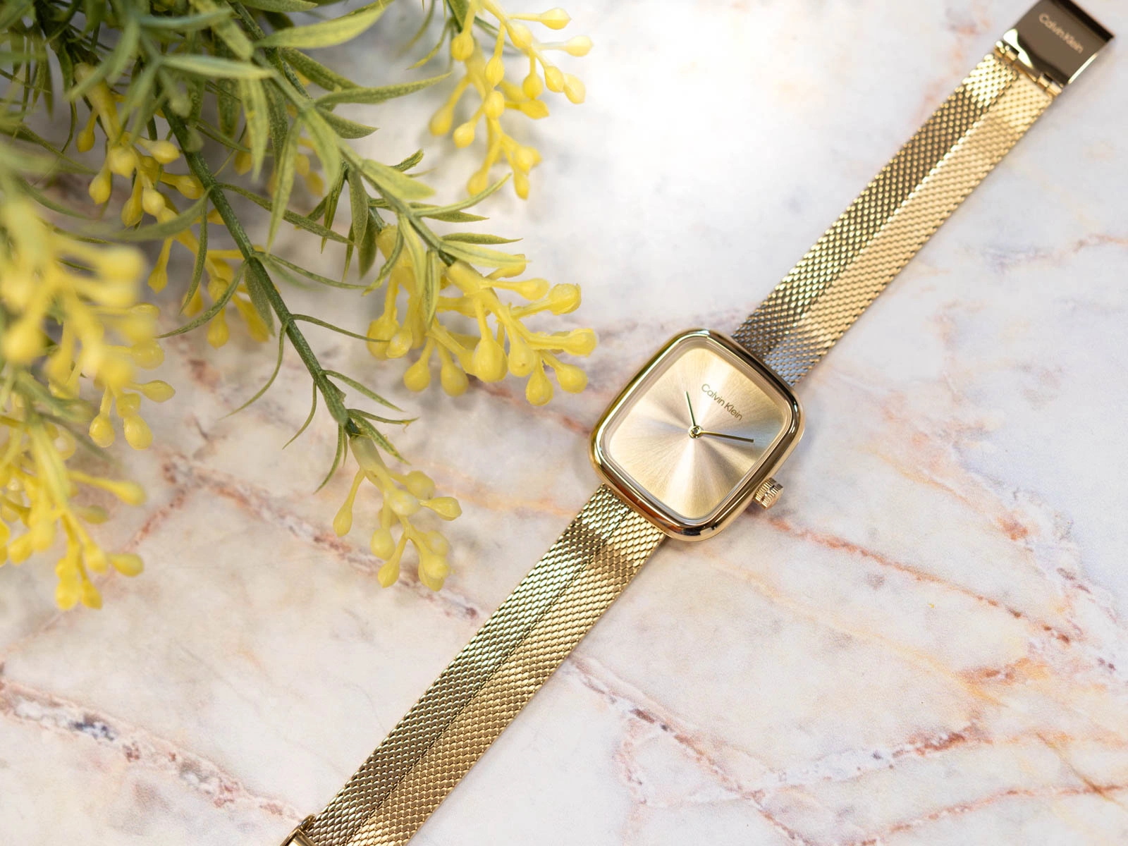 - Zegarek Damski Calvin Klein 25100099 złoty na bransolecie.