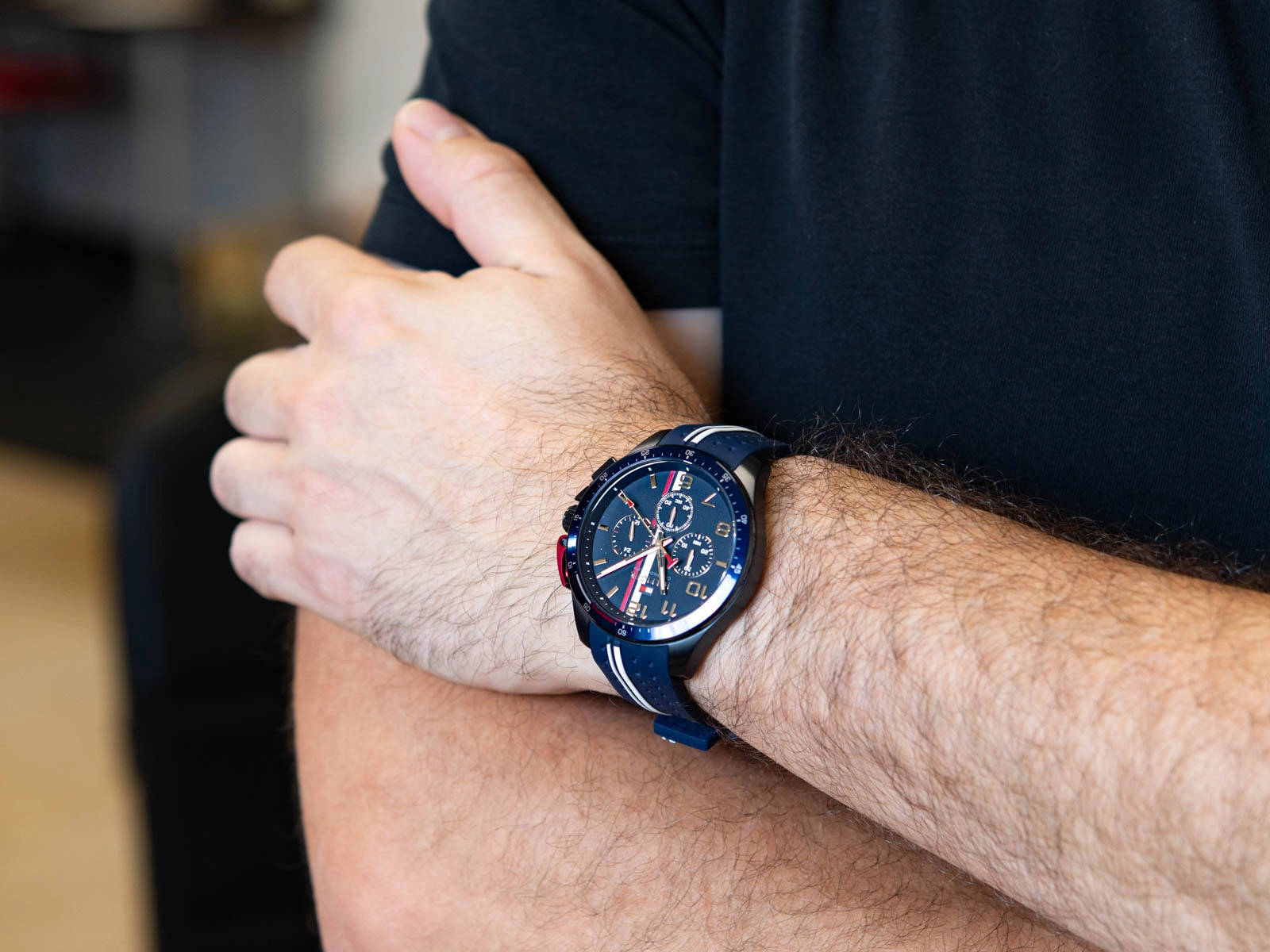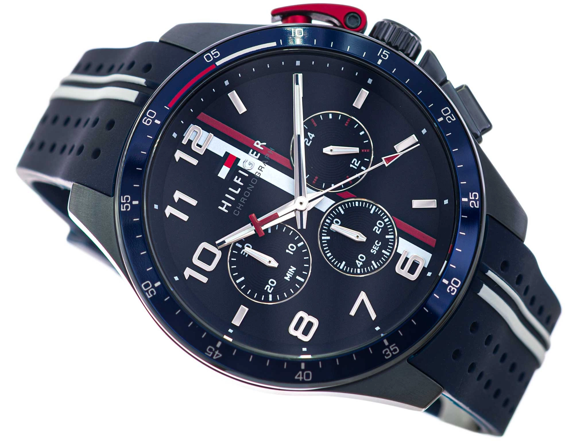 - Zegarek Męski Tommy Hilfiger 1792169 granatowy na pasku, posiada funkcję stopera oraz neobrite.