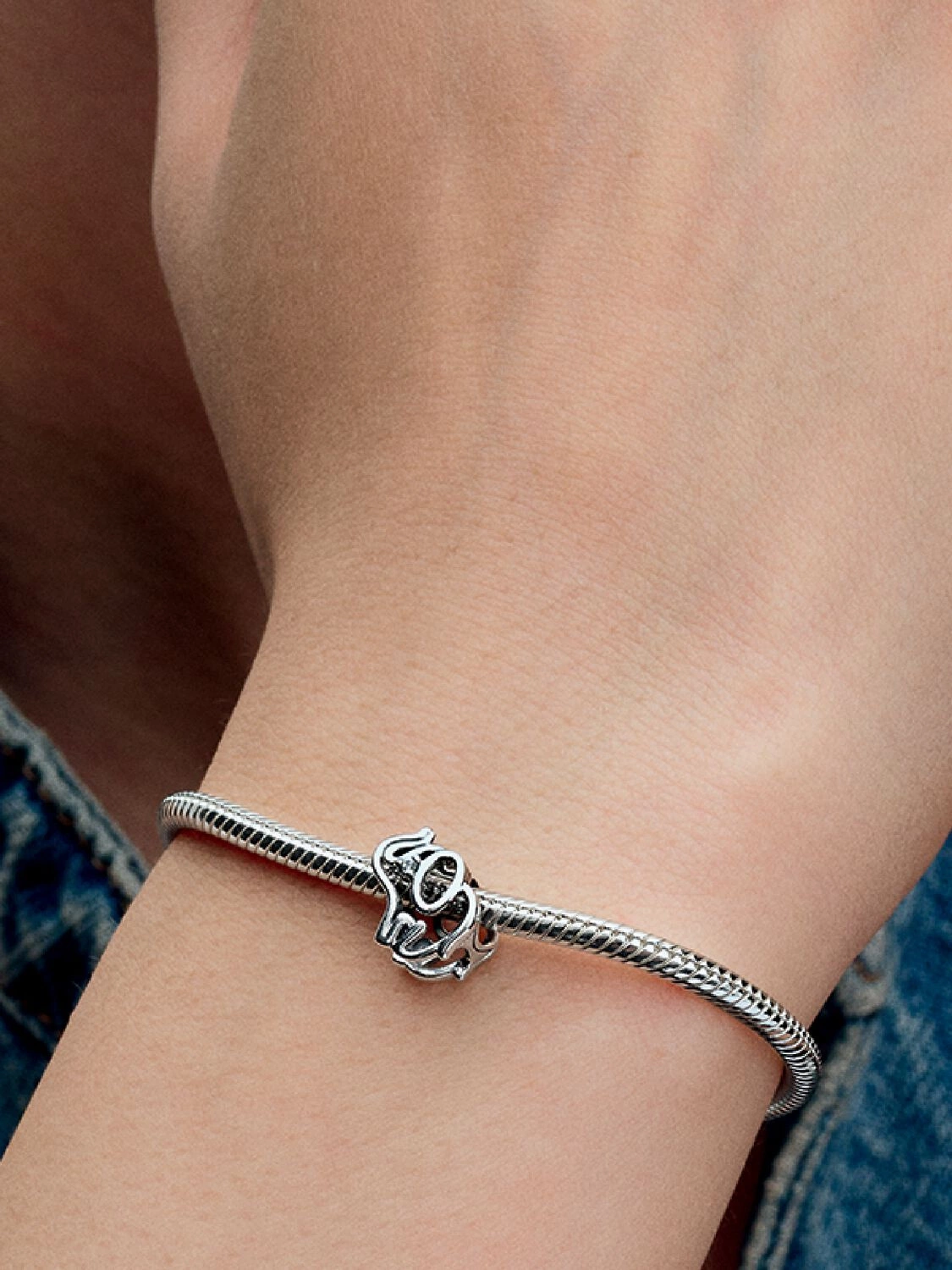 Charms Pandora Ażurowy słoń 793345C01 to niezwykła ozdoba, w której natura spotyka się ze sztuką. Projekt inspirowany techniką rysunku jedną kreską ukazuje sylwetkę słonia wykonaną z pojedynczego, misternie uformowanego srebrnego pasma. Minimalistyczny, a jednocześnie pełen ekspresji motyw zachwyca prostotą i subtelną symboliką – słoń od wieków utożsamiany jest z mądrością, siłą i szczęściem. Oczy zdobią drobne, połyskujące kamienie, które dodają całości delikatnego blasku i ożywiają kompozycję. Ten ażurowy charms to propozycja dla osób ceniących biżuterię pełną znaczeń, łączącą nowoczesną estetykę z ponadczasowym przesłaniem.