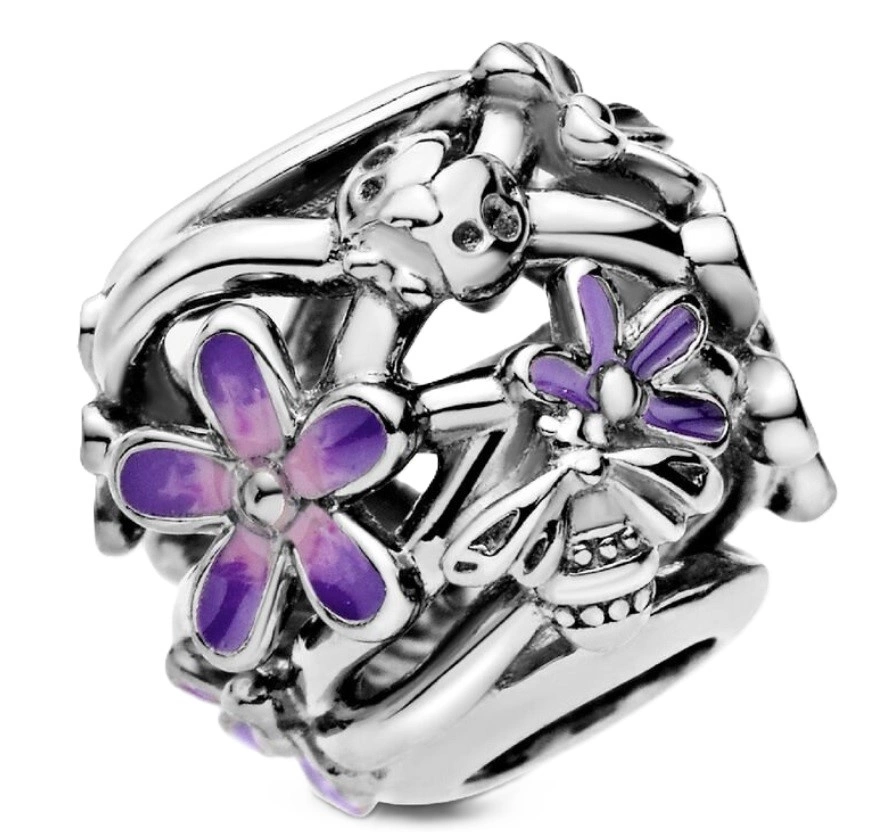 - Charms Pandora Ażurowy Fioletowa stokrotka 798772C02 srebrny