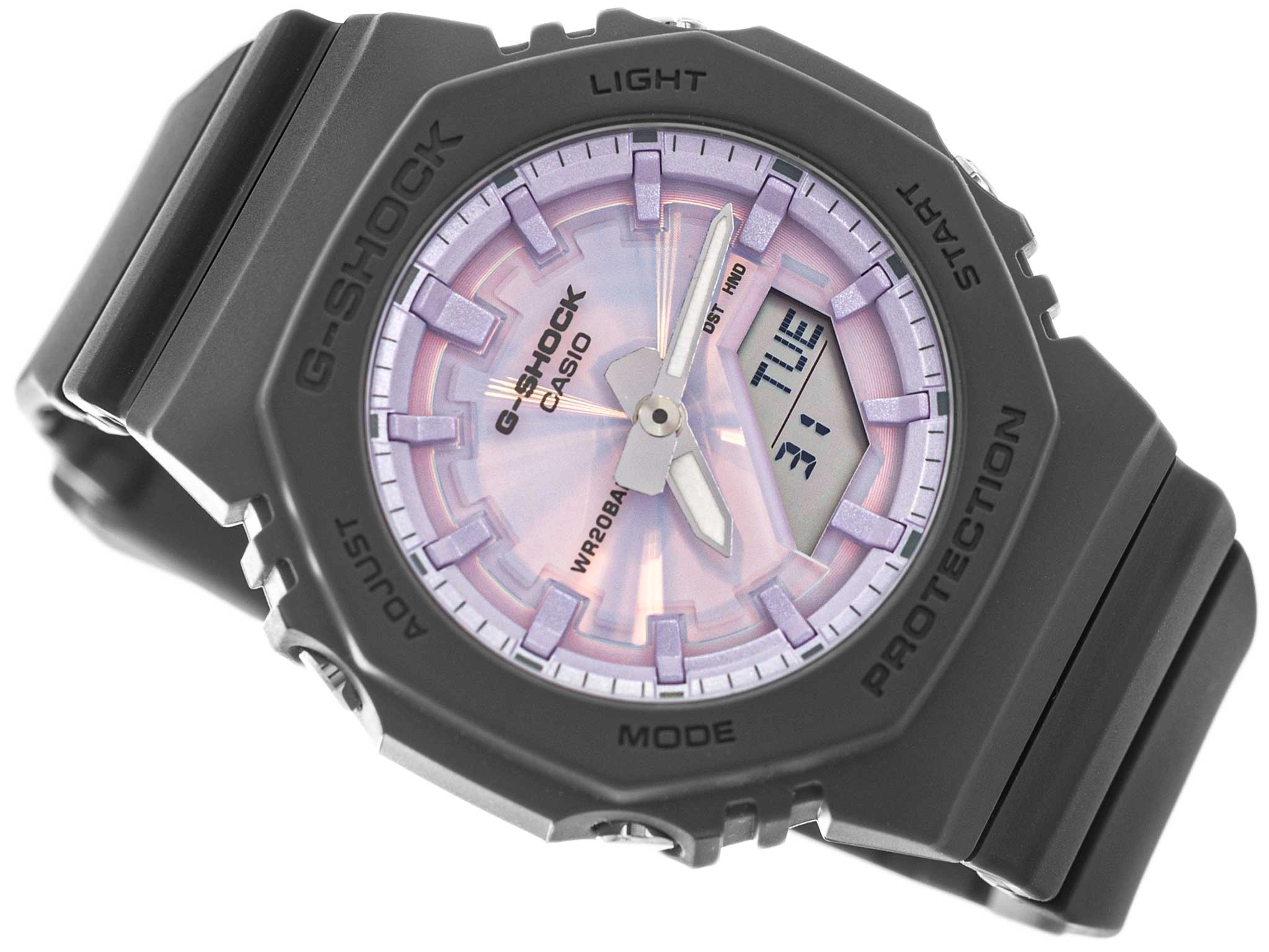 Obudowa wykonana z trwałego, odpornego na uderzenia tworzywa w połączeniu z mineralnym szkłem skutecznie chroni zegarek przed uszkodzeniami mechanicznymi. Model ten oferuje także praktyczne rozwiązania, takie jak stoper, timer, alarm czy automatyczny kalendarz czyli funkcje, które ułatwiają organizację codziennych obowiązków i treningów. Dodatkowe podświetlenie oraz wskazówki pokryte powłoką luminescencyjną zapewniają czytelność nawet po zmroku. Dzięki harmonijnemu połączeniu funkcjonalności, lekkości i nowoczesnego wzornictwa, GMA-P2100PC-1A to idealny wybór dla kobiet ceniących niezawodność i styl. Całość zapakowana jest w eleganckie, oryginalne pudełko CASIO doskonałe również jako prezent.