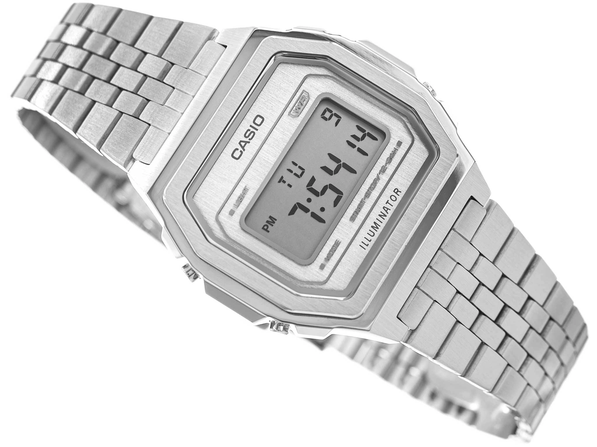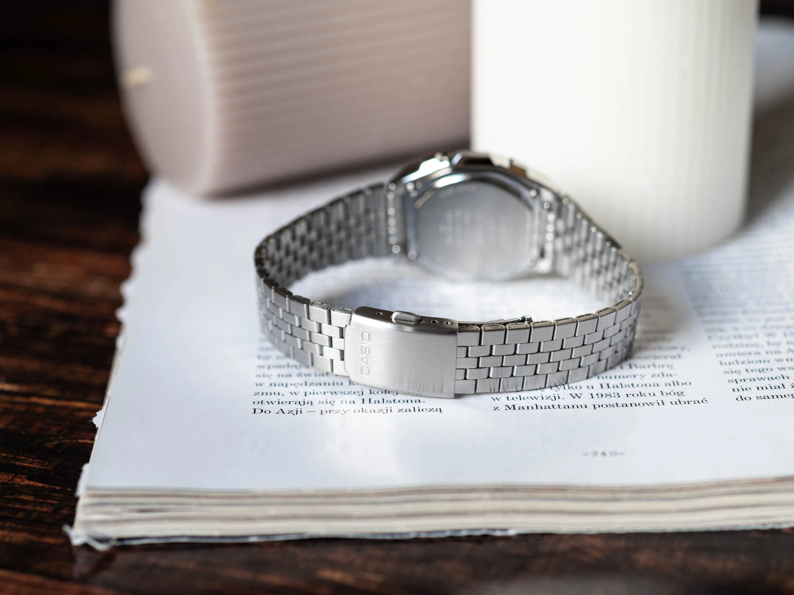 Casio A1000A-7EF to klasyczny przykład ponadczasowego designu w nowoczesnym wydaniu. Cyfrowy zegarek utrzymany w jednolitej, srebrnej tonacji odzwierciedla charakter kultowych modeli marki z lat 80., zachowując przy tym subtelny, uniwersalny styl. Smukła koperta o łagodnie zaokrąglonych krawędziach harmonijnie współgra z elegancką bransoletą ze stali nierdzewnej, tworząc spójną całość o minimalistycznym wyrazie. Stal szlachetna, z której wykonano zarówno kopertę, jak i bransoletę, nadaje konstrukcji trwałość oraz szlachetny połysk, a gładka powierzchnia ogniw podkreśla nowoczesny charakter modelu. Za prostą formą kryje się funkcjonalne wnętrze. Model wyposażono w stoper, alarm i podświetlenie, dzięki czemu pozostaje praktycznym towarzyszem w codziennych sytuacjach. Casio A1000A-7EF łączy lekkość retro z nowoczesną wygodą, pozostając dodatkiem o uniwersalnym charakterze. Subtelny, ale wyrazisty, doskonale odnajdzie się zarówno w casualowych zestawach, jak i w bardziej formalnych stylizacjach, podkreślając indywidualny styl osoby, która go nosi.