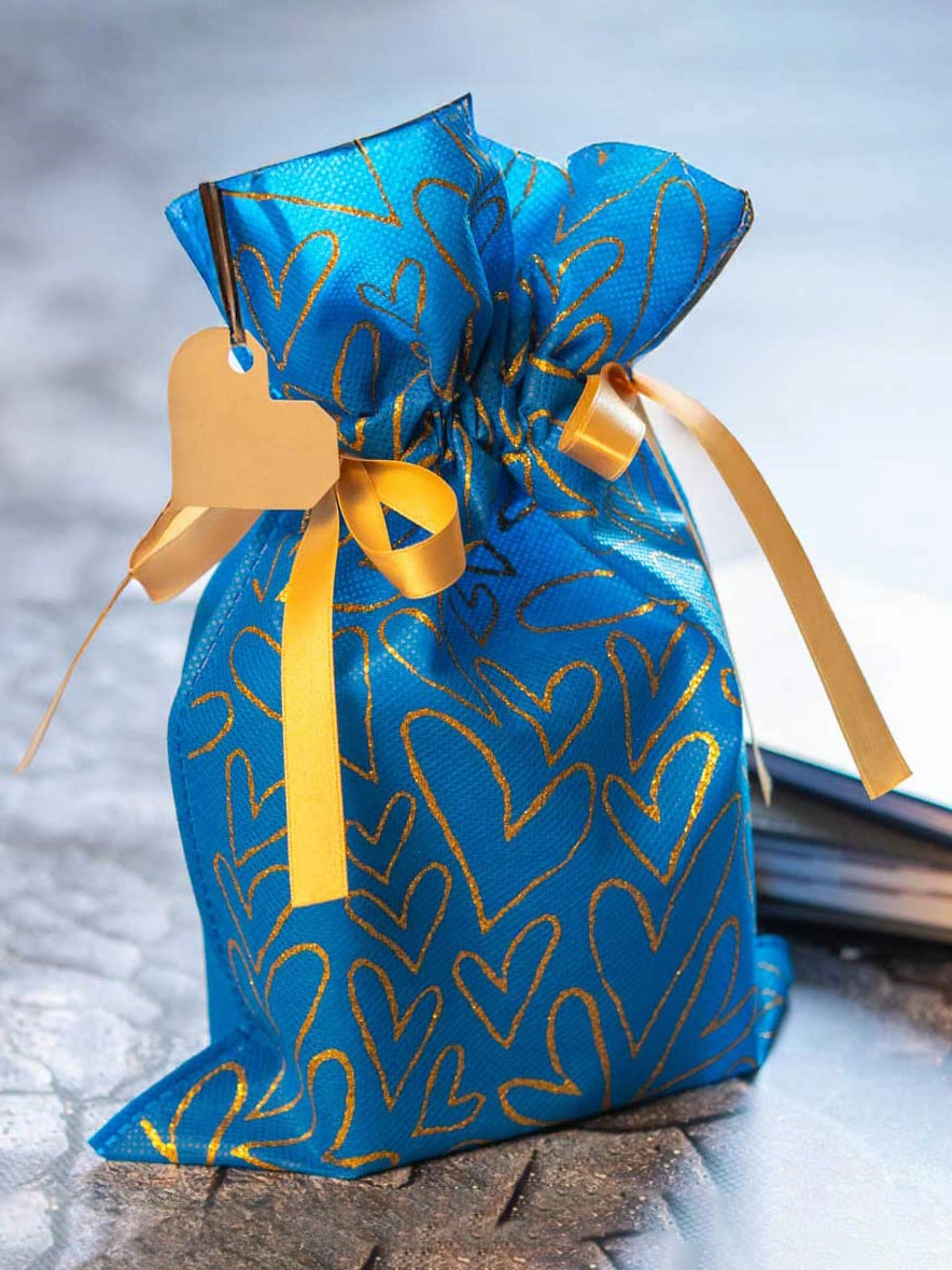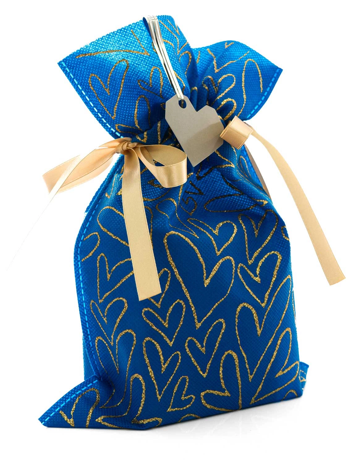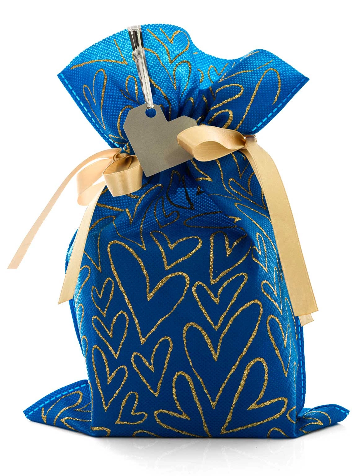 WOREK PREZENTOWY NIEBIESKI W ZŁOTE SERCA