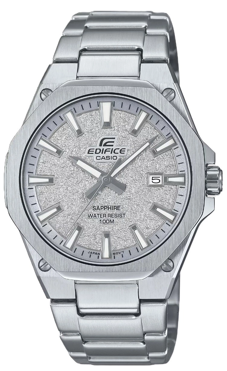 - Wodoszczelny Zegarek Męski Casio Edifice EFR-S108DE-8AVUEF srebrny na bransolecie, posiada funkcje takie jak neobrite i datownik.