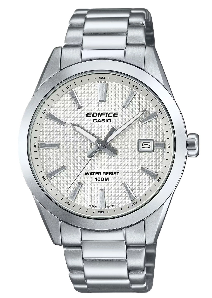 - Wodoszczelny Zegarek Męski Casio Edifice EFV-160D-7AVEF srebrny na bransolecie, posiada funkcje takie jak neobrite i datownik.