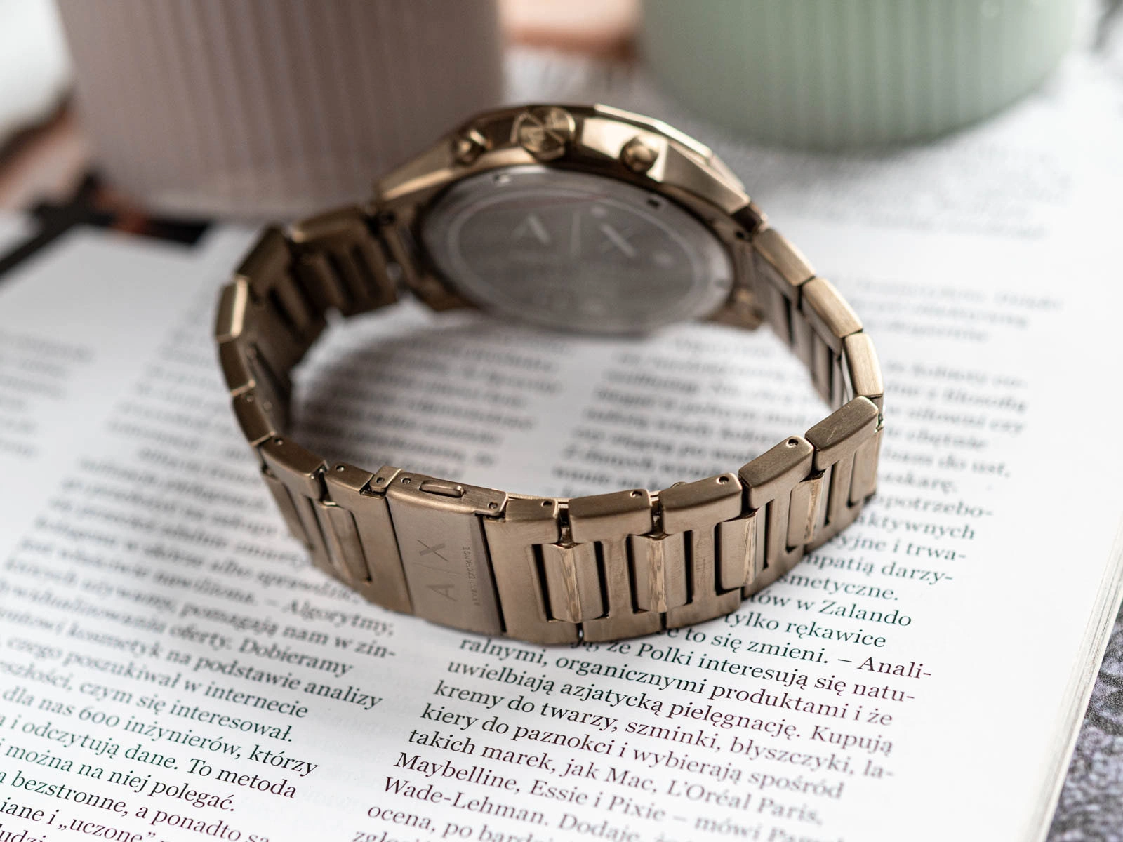 Armani Exchange Banks AX1739 to propozycja stworzona z myślą o mężczyznach nowoczesnych, pewnych siebie i lubiących wyróżniać się w tłumie. Model ten łączy klasyczną elegancję z nutą ekstrawagancji, dzięki czemu idealnie trafia w gusta osób ceniących niebanalne dodatki. Utrzymany w szlachetnym odcieniu starego złota, prezentuje się wyjątkowo efektownie, dodając każdej stylizacji wyrazistości i luksusowego charakteru. Koperta oraz bransoleta zostały wykonane ze stali szlachetnej, co gwarantuje trwałość oraz odporność na codzienne użytkowanie. Bransoleta zakończona jest praktycznym zapięciem motylkowym, które nie tylko ułatwia zakładanie zegarka, ale przede wszystkim zapewnia bezpieczeństwo noszenia eliminując ryzyko przypadkowego zsunięcia się z nadgarstka.