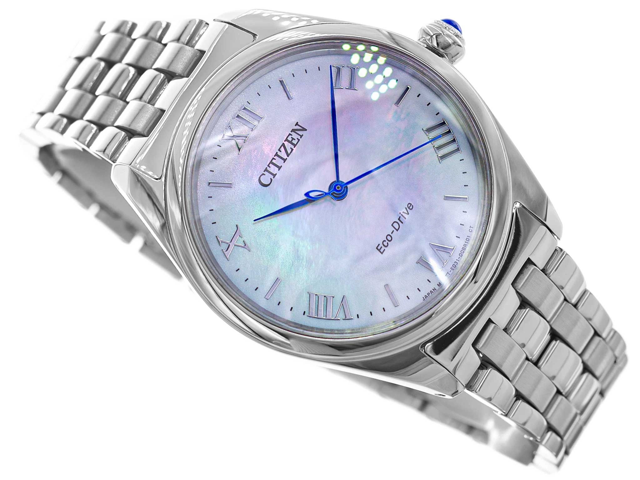 Citizen EM1140-80D Eco-Drive Citizen L Lakeside at Dawn to zegarek, który łączy w sobie spokój natury z wyrafinowaniem współczesnego designu. Inspirowany subtelnym pięknem poranka nad taflą jeziora, stanowi hołd dla harmonii, światła i kobiecej delikatności. Jego elegancka forma zyskuje wyjątkowy charakter dzięki dopracowanym detalom i doskonałej jakości wykonania, będąc jednocześnie symbolem nowoczesnej technologii w służbie klasycznego stylu. Koperta i bransoleta zostały wykonane z najwyższej jakości stali szlachetnej w srebrnym odcieniu, który podkreśla chłodną elegancję modelu. Subtelna, perłowa tarcza mieni się w świetle, tworząc efekt głębi i naturalnego blasku. Nad całością czuwa odporne na zarysowania szkło szafirowe, zapewniające nieskazitelną przejrzystość i nieskazitelną prezencję zegarka. Sercem modelu jest mechanizm solarny Eco-Drive kaliber E031, który wykorzystuje energię światła – zarówno naturalnego, jak i sztucznego – eliminując potrzebę wymiany baterii. Citizen EM1140-80D Eco-Drive Citizen L Lakeside at Dawn to wyjątkowy przykład równowagi pomiędzy technologią, precyzją i estetyką. Zegarek emanuje spokojem i ponadczasowym wdziękiem, stając się nie tylko narzędziem do odmierzania czasu, ale także eleganckim wyrazem stylu i kobiecej subtelności – niczym poranny blask odbijający się na tafli spokojnego jeziora.