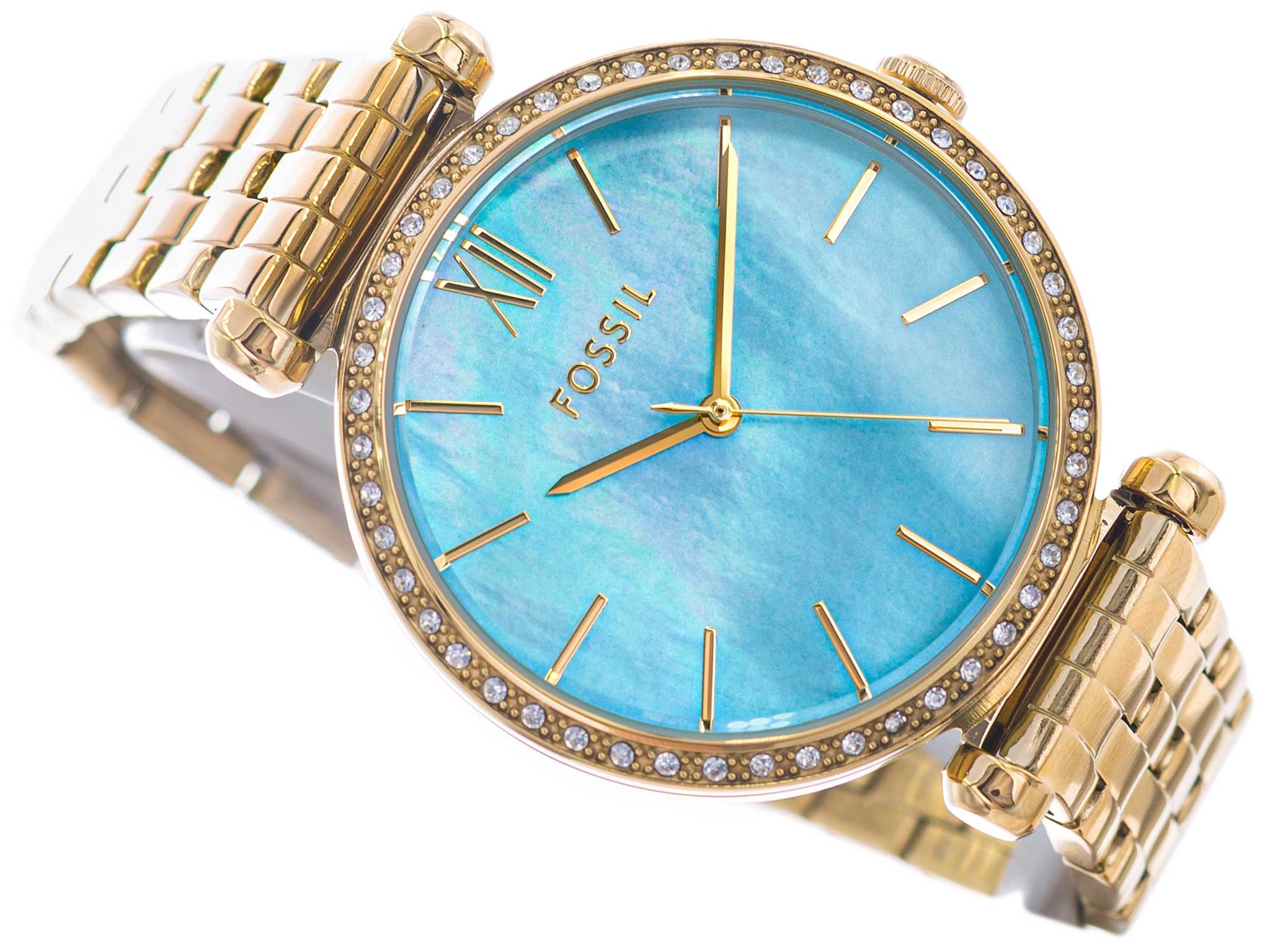 Uwagę przyciąga niebieska tarcza o delikatnym, perłowym połysku. W zależności od oświetlenia mieni się subtelnymi refleksami, tworząc efekt pełen kobiecego wdzięku. Złote indeksy i smukłe wskazówki podkreślają dopracowany design, charakterystyczny dla marki Fossil. Całość chroni odporne na zarysowania szkło mineralne, a eleganckie metalowe pudełko sprawia, że zegarek doskonale nadaje się na prezent - gotowy, by stać się ulubionym dodatkiem w każdej kolekcji. Fossil BQ5029 to nie tylko zegarek, to stylowy akcent, który podkreśla pewność siebie i zamiłowanie do klasy z odrobiną blasku.