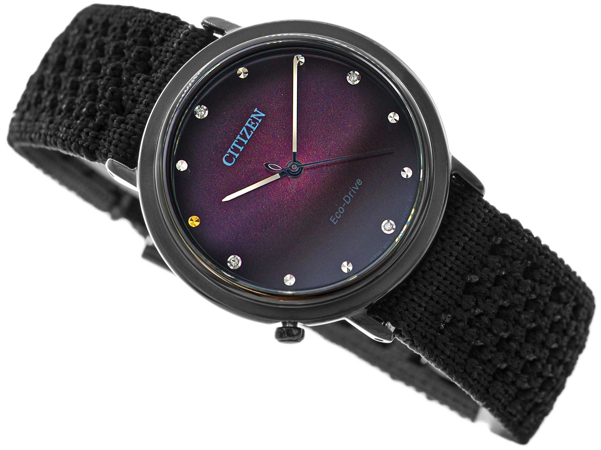 - Zegarek Damski Citizen EM1007-47E. Czarny na pasku Zegarek solarny.