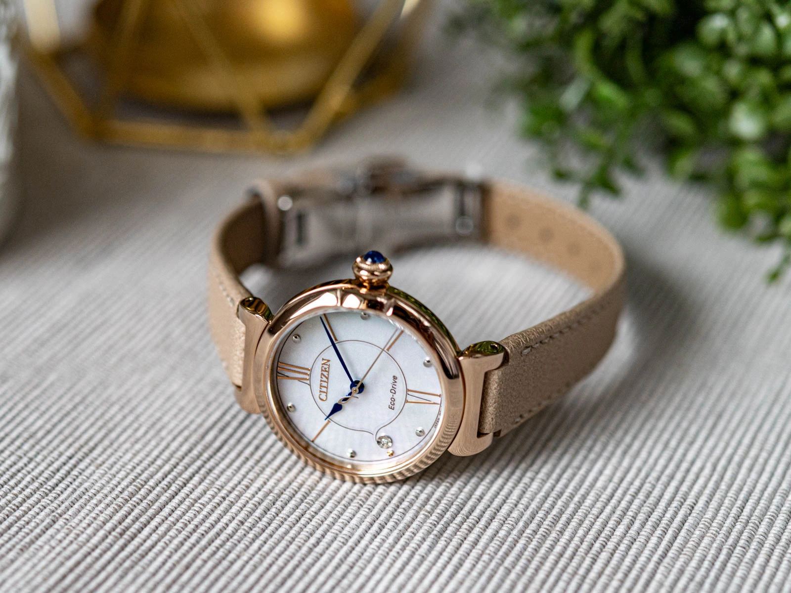 Sercem zegarka jest mechanizm solarny Eco-Drive kaliber E031. Dzięki wbudowanym ogniwom fotowoltaicznym zegarek pozyskuje energię z dowolnego źródła światła, przekształcając ją w energię elektryczną magazynowaną w akumulatorze. System ten eliminuje konieczność wymiany baterii, czyniąc model nie tylko niezawodnym, ale i przyjaznym dla środowiska. Wbudowane zabezpieczenia chronią mechanizm przed przeładowaniem, a funkcja informowania o poziomie naładowania zapewnia pełną kontrolę nad jego działaniem. Citizen EM1073-18D Eco-Drive Citizen L Maybells to zegarek, który łączy w sobie precyzję technologii i poetykę natury. Stanowi doskonały przykład tego, w jaki sposób japońska marka interpretuje pojęcie nowoczesnego luksusu – z poszanowaniem detalu, estetyki i idei zrównoważonego piękna. Każdy element tego modelu został przemyślany z niezwykłą starannością, by tworzyć harmonijną całość o ponadczasowym charakterze. To nie tylko narzędzie do odmierzania czasu, lecz symbol doskonałej równowagi pomiędzy technologią, sztuką i kobiecą elegancją.